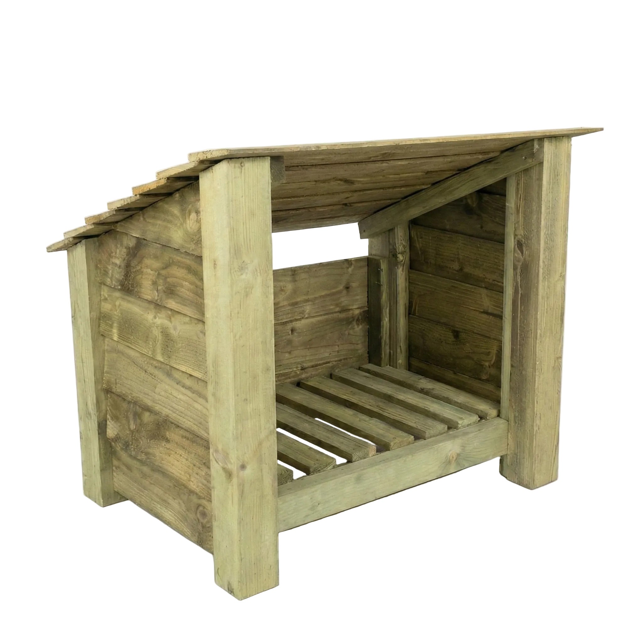 The Single Log Store is engineered for optimal firewood storage and seasoning. Constructed from pressure-treated, construction-grade timber, it ensures durability and resistance to decay. The design features slatted sides and a raised base, promoting air circulation to effectively reduce moisture content in logs. A sloped roof facilitates efficient water runoff, safeguarding the wood from precipitation. All provided fixings are corrosion-resistant, enhancing the structure's longevity. This log store offers a practical solution for maintaining a dry and organized firewood supply.