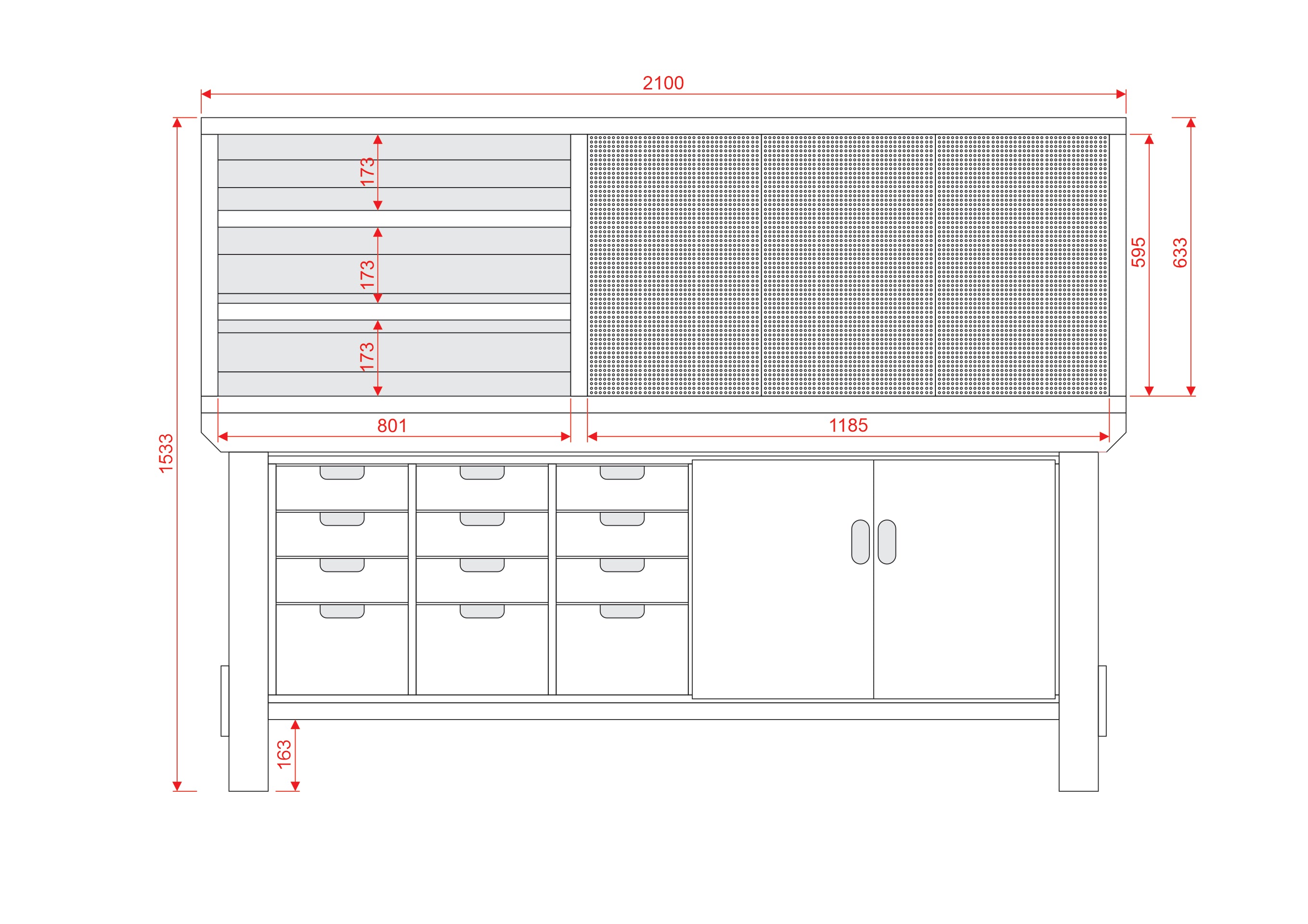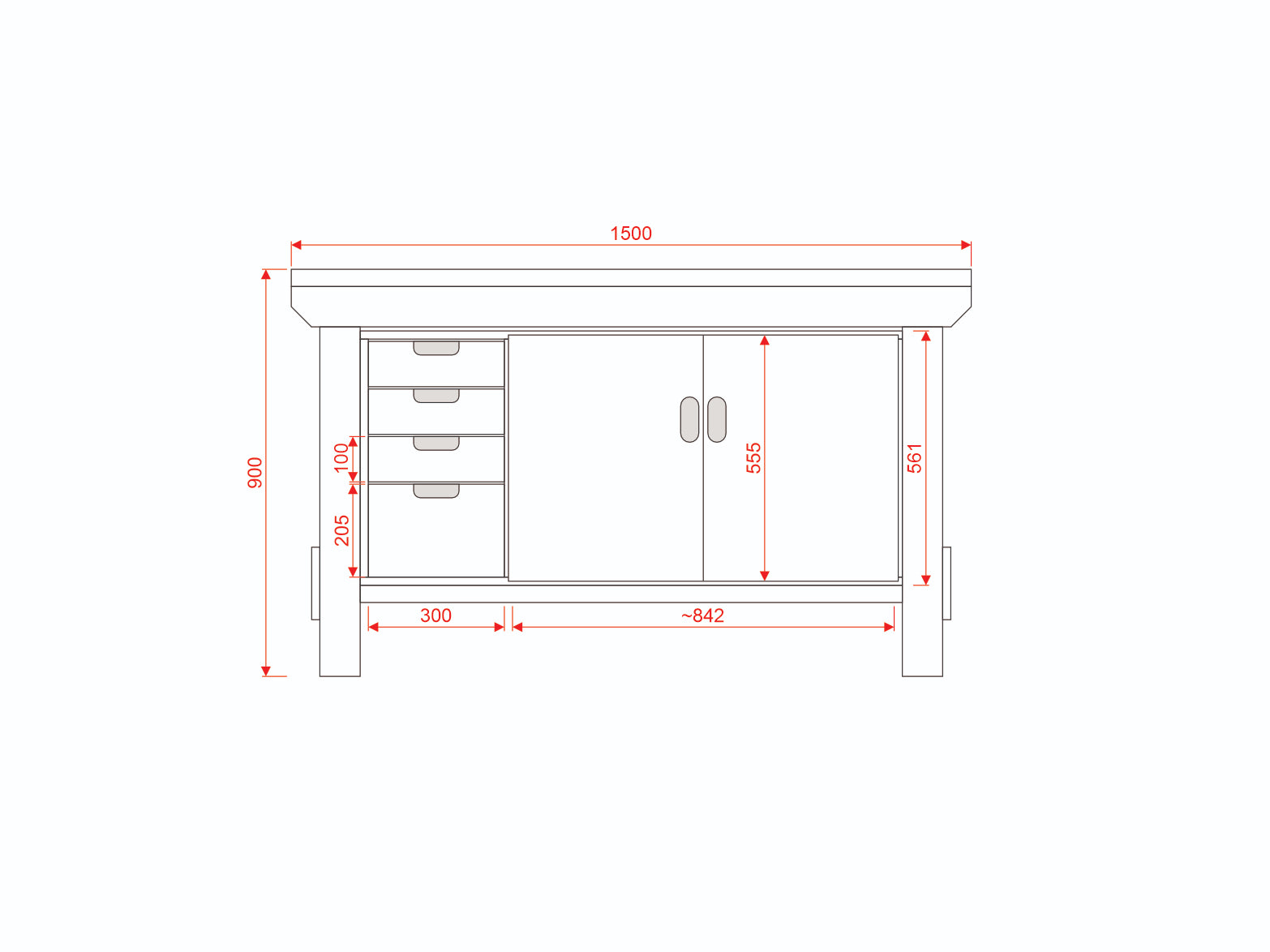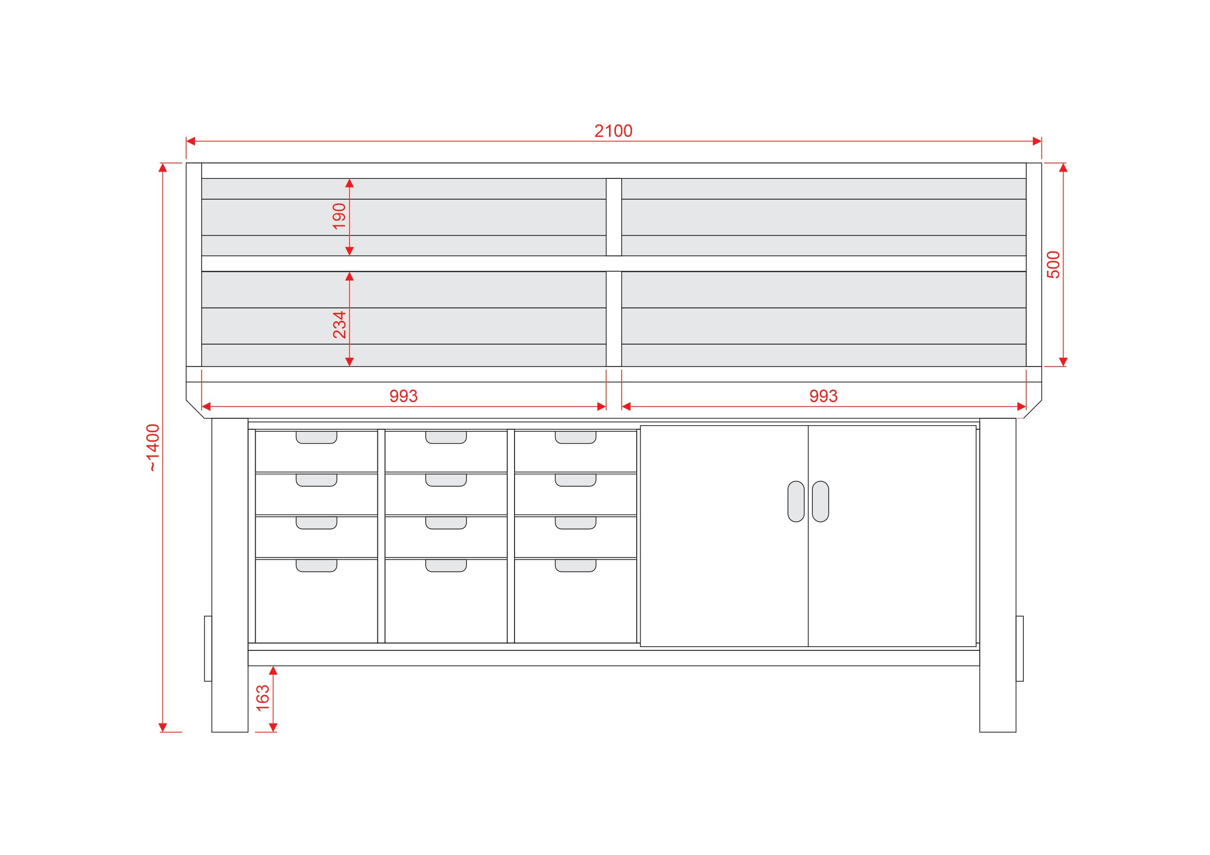 This workbench is available in multiple sizes, ranging from 1500mm to 2100mm in width, with a standard height of 900mm and depth of 640mm. Each unit is beautifully finished, reflecting quality craftsmanship and attention to detail.
