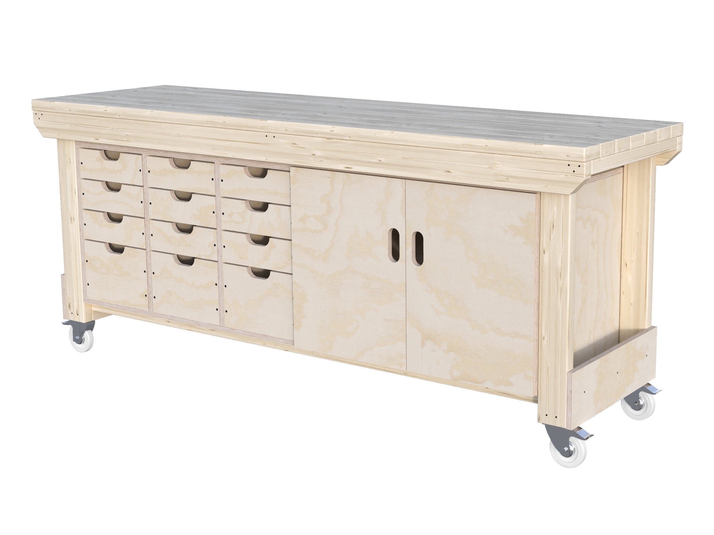 Upgrade your workspace with the Acorn Heavy-Duty Cabinet Workbench, designed for maximum durability, storage, and efficiency. Crafted from premium construction-grade CLS C16 kiln-dried timber, this heavy-duty workbench supports up to 950kg U.D.L, making it ideal for professional workshops, garages, and industrial settings. Featuring spacious drawers, a large cupboard, and an adjustable shelf, it keeps your tools and equipment organized and within reach. Available with optional heavy-duty swivel wheels, this versatile workbench offers both stability and mobility. Built to last and handcrafted in the UK – get yours today!