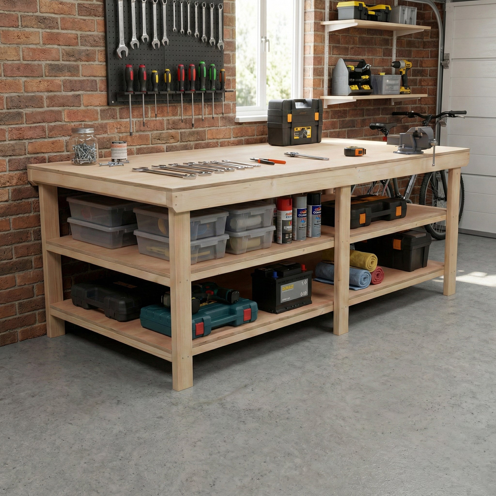 The Wooden Workbench with Eucalyptus Ply Top is a durable, mobile, and highly functional workspace solution, perfect for workshops, garages, studios, and DIY projects. Crafted in the UK, this workbench is built with a construction-grade CLS C16 kiln-dried timber frame and a smooth 18mm Redwood Hardwood Faced Eucalyptus Plywood top, ensuring exceptional strength and longevity.