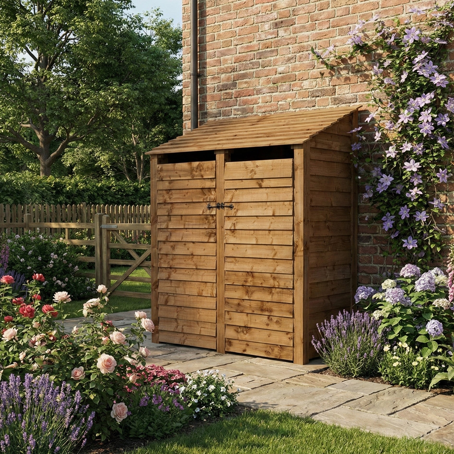 Read more about our environmental policies - Our wheelie bin storages are crafted from high-quality pressure-treated timber, known for its durability and resistance to decay, insects, and moisture. This treatment ensures your wheelie bin storage remains strong and long-lasting, making it perfect for outdoor use in gardens, patios, and public spaces.