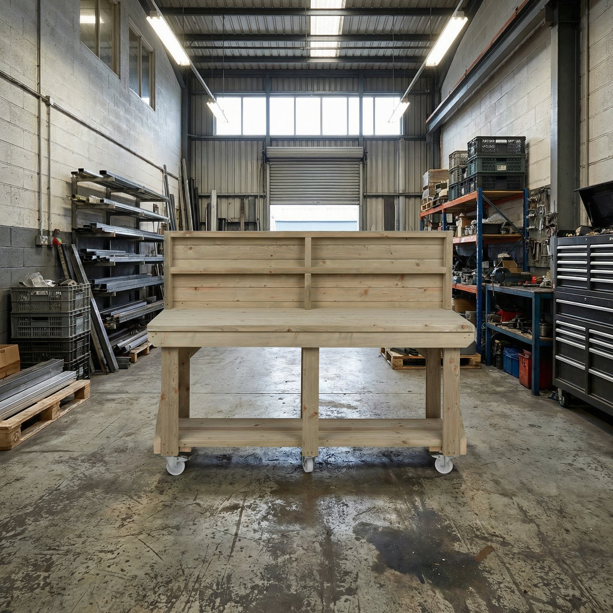 Read more about our environmental policies - Our Indoor/Outdoor Workbenches are constructed from high-quality pressure-treated timber, renowned for its durability and resistance to decay, insects, and moisture. This treatment ensures the wood withstands various environmental conditions, making it ideal for both indoor and outdoor use. Over time, pressure-treated wood may develop a natural patina, which does not compromise its structural integrity. To maintain its appearance and prolong its lifespan, we recommend applying a suitable wood preservative or sealant annually. This practice helps protect the wood from weathering and keeps your workbench looking its best for years to come. Additionally, regular maintenance, such as cleaning and inspecting for any signs of wear, will ensure the workbench remains a reliable and attractive addition to your workspace. By following these care guidelines, you can enjoy the benefits of a sturdy and long-lasting workbench tailored to your indoor and outdoor project needs.