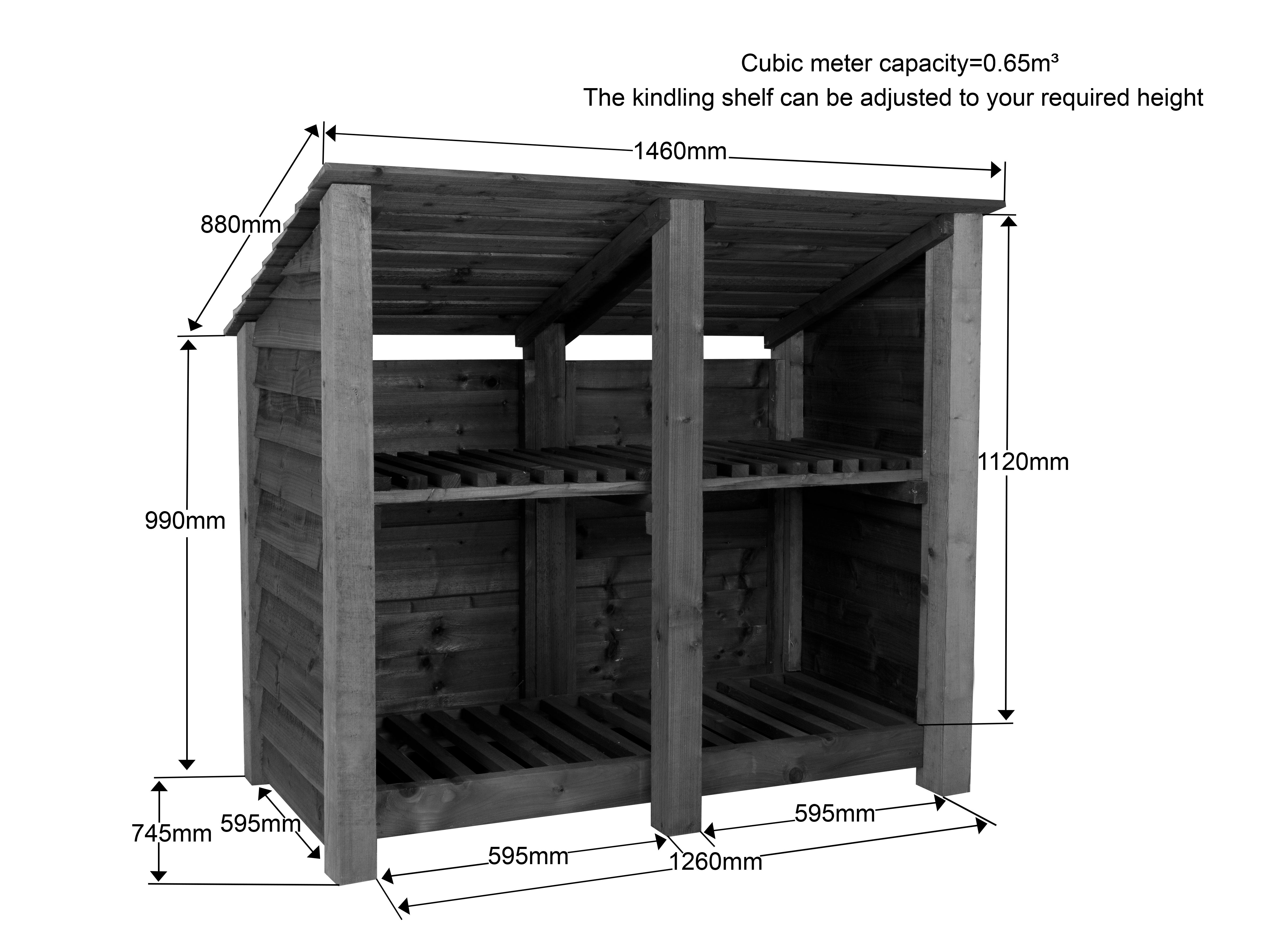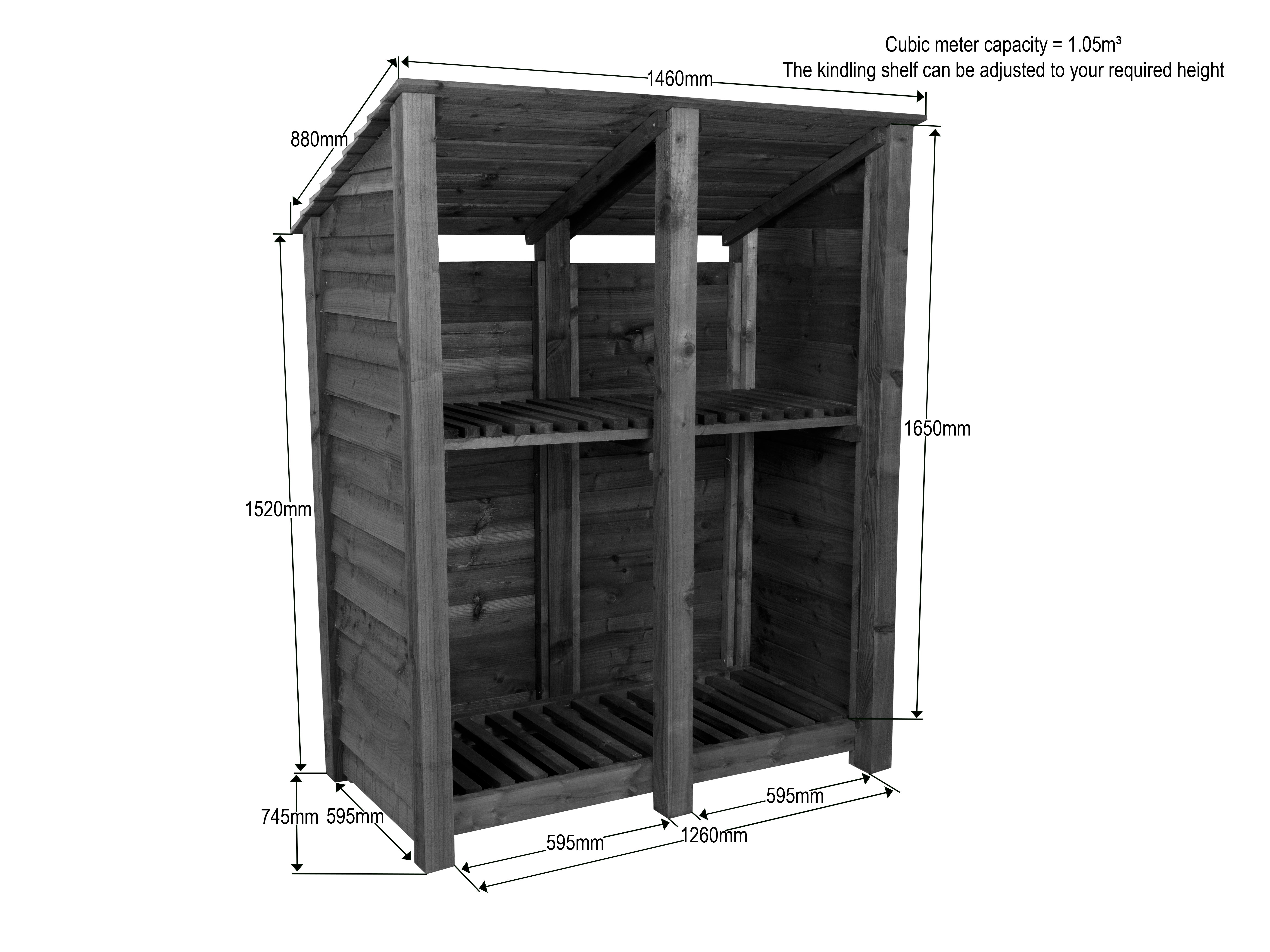 The Double bay Log Store is engineered for optimal firewood storage and seasoning. Constructed from pressure-treated, construction-grade timber, it ensures durability and resistance to decay. The design features slatted sides and a raised base, promoting air circulation to effectively reduce moisture content in logs. A sloped roof facilitates efficient water runoff, safeguarding the wood from precipitation. All provided fixings are corrosion-resistant, enhancing the structure's longevity. This log store offers a practical solution for maintaining a dry and organized firewood supply.