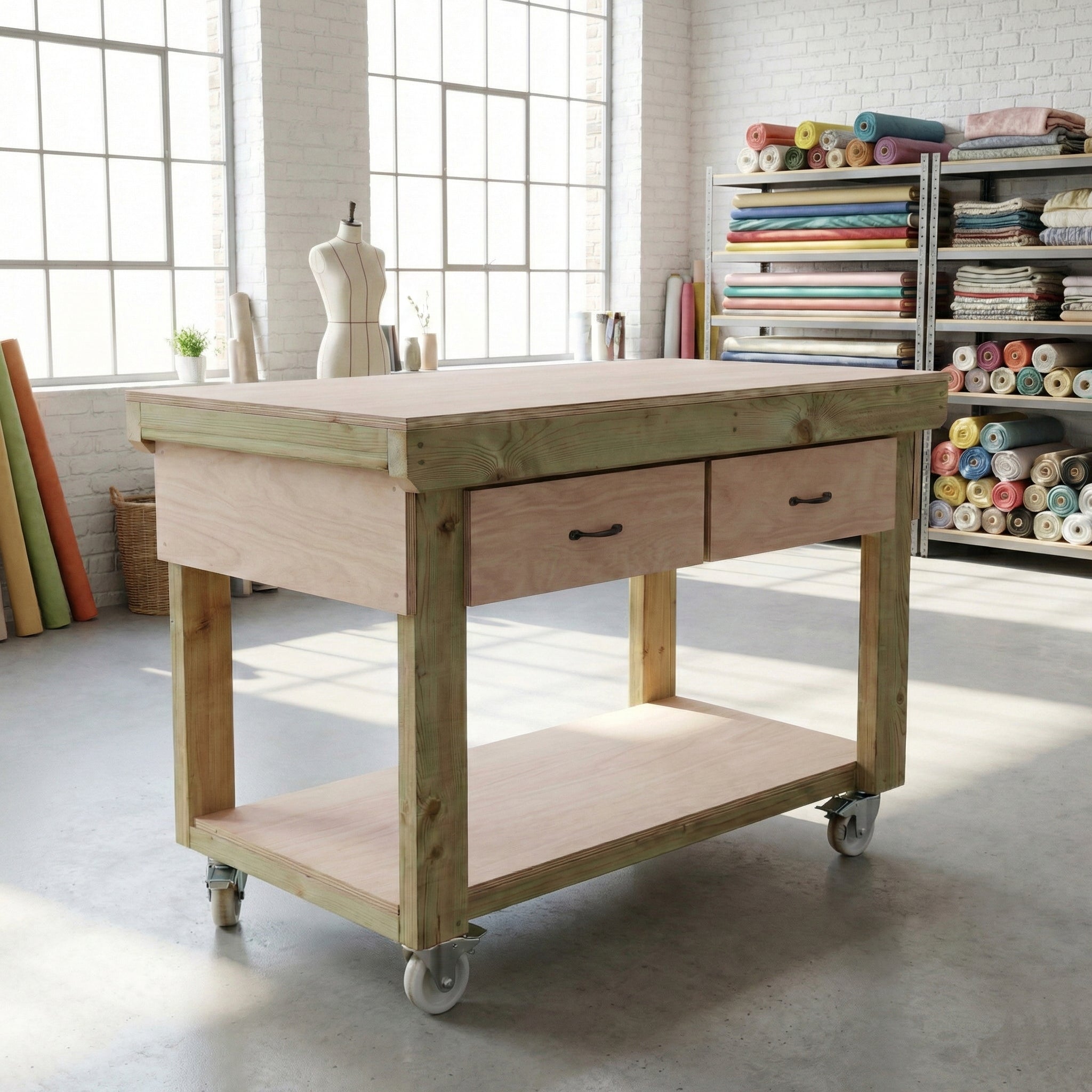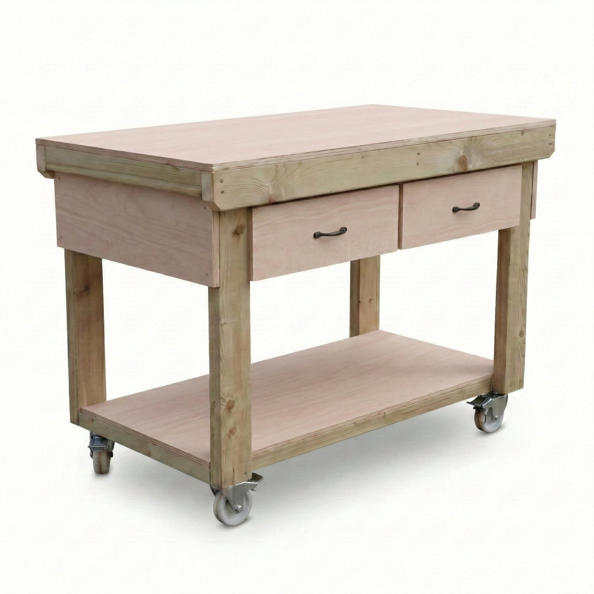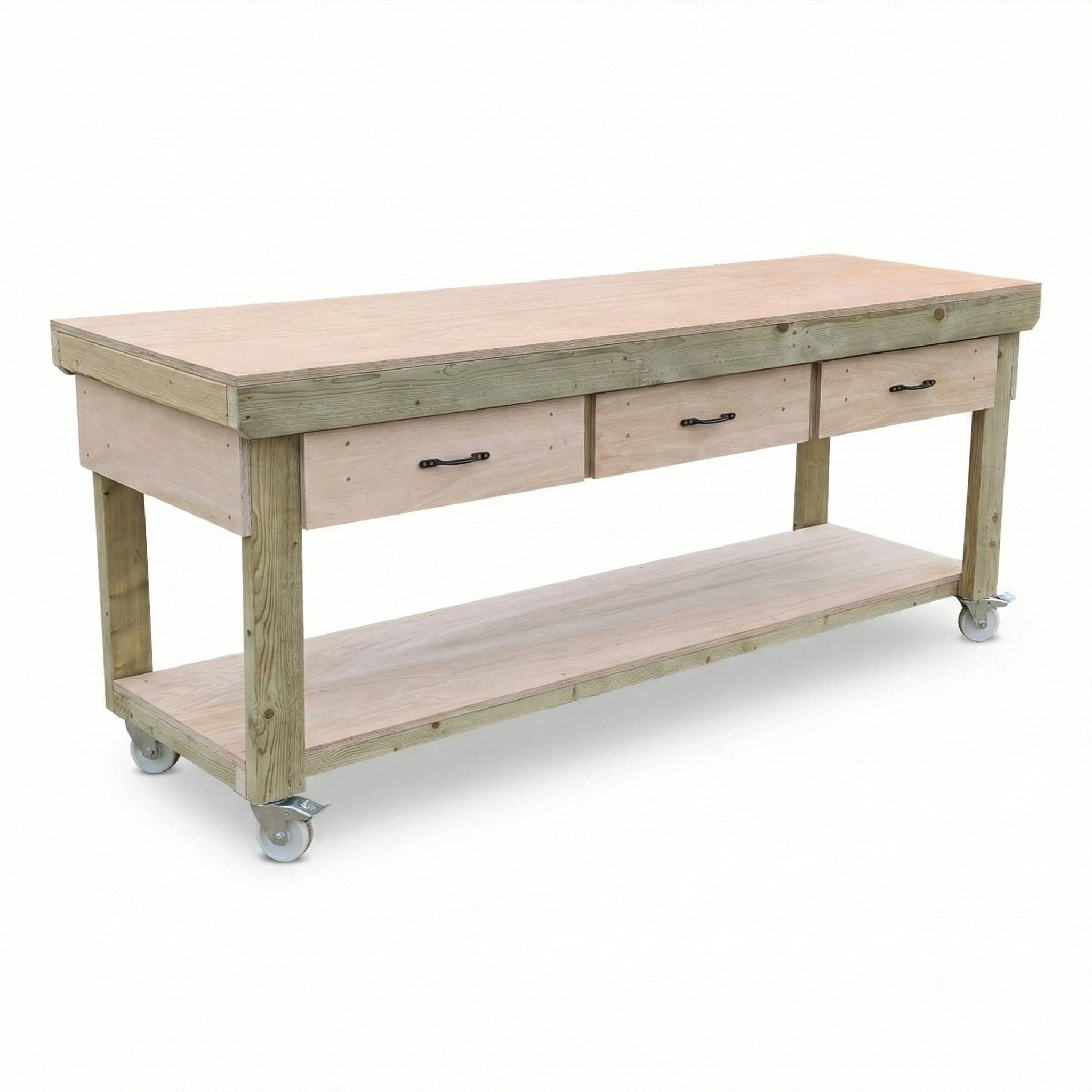 Our Wooden Workbench with Drawers and Eucalyptus Hardwood Top is meticulously designed to provide a robust and dependable workspace for various applications. The frame is constructed from high-quality CLS C16 kiln-dried timber, ensuring structural integrity and longevity. The 18mm eucalyptus hardwood plywood work surface offers a durable and smooth platform for all your projects. Depending on the chosen length, the workbench includes up to three spacious drawers, allowing for organized storage of tools and materials. Handmade in the UK, each bench is supplied in knockdown form for easy on-site assembly, requiring only a screwdriver for setup.