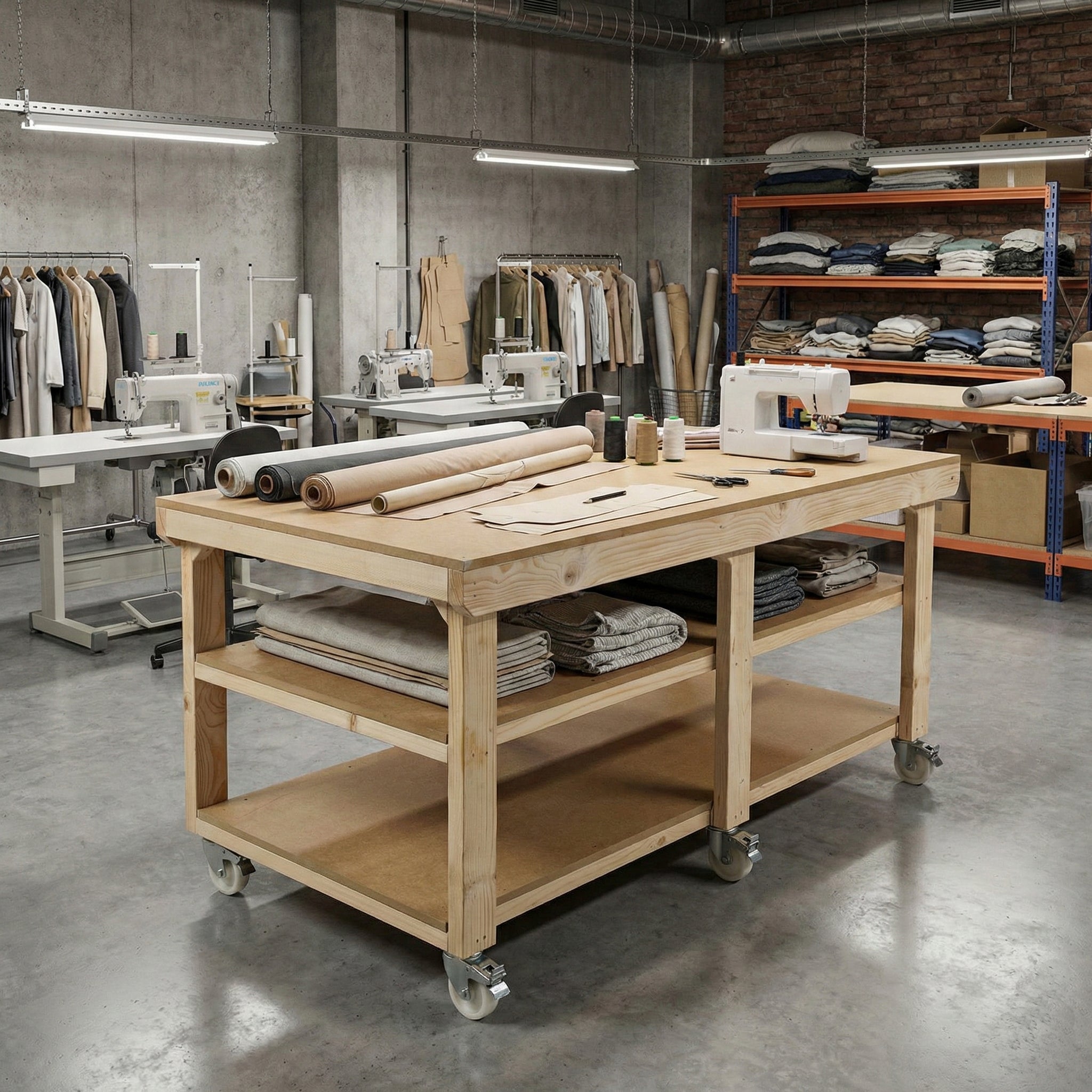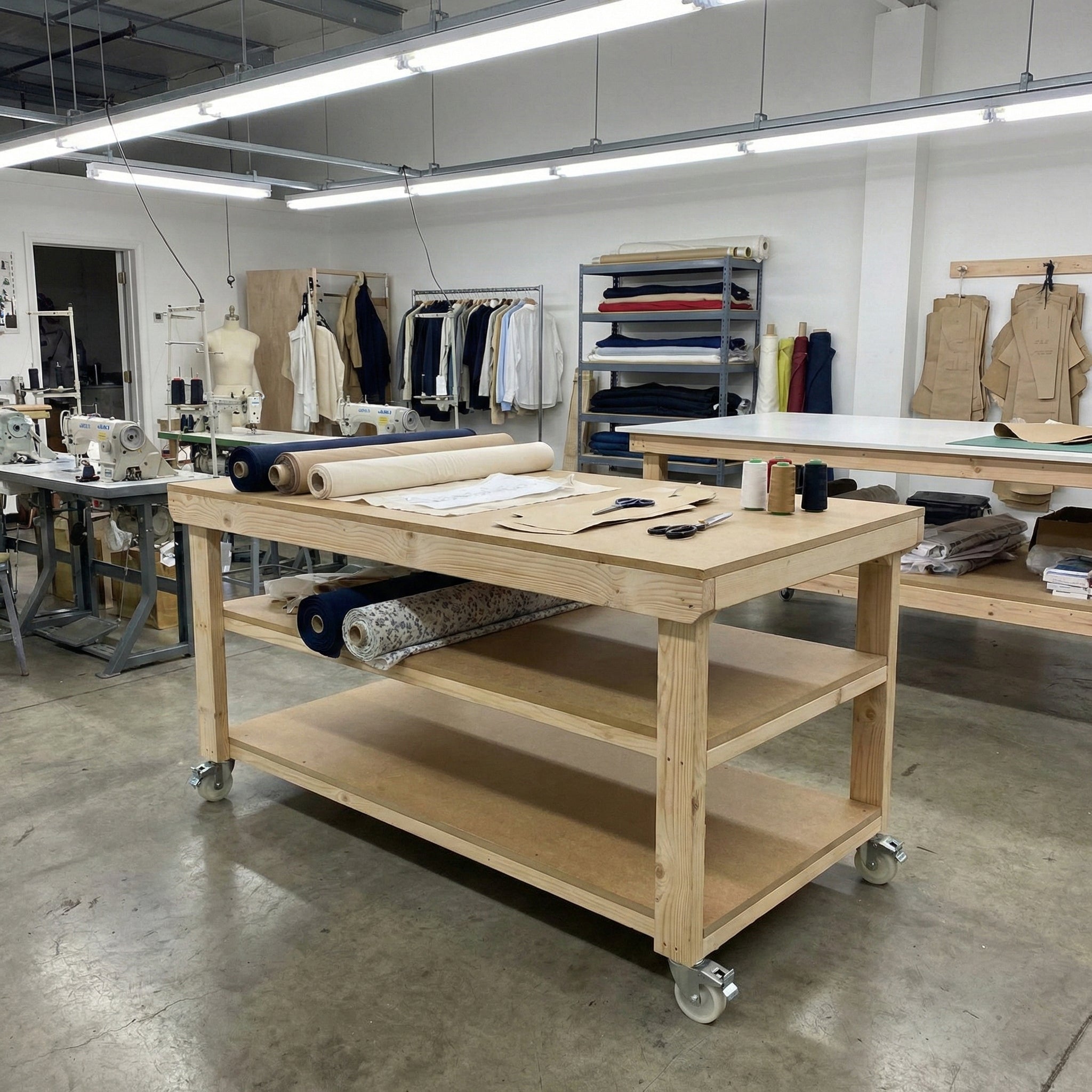 Wooden Workbench MDF Top Depth-3ft With Wheels and Double Shelf