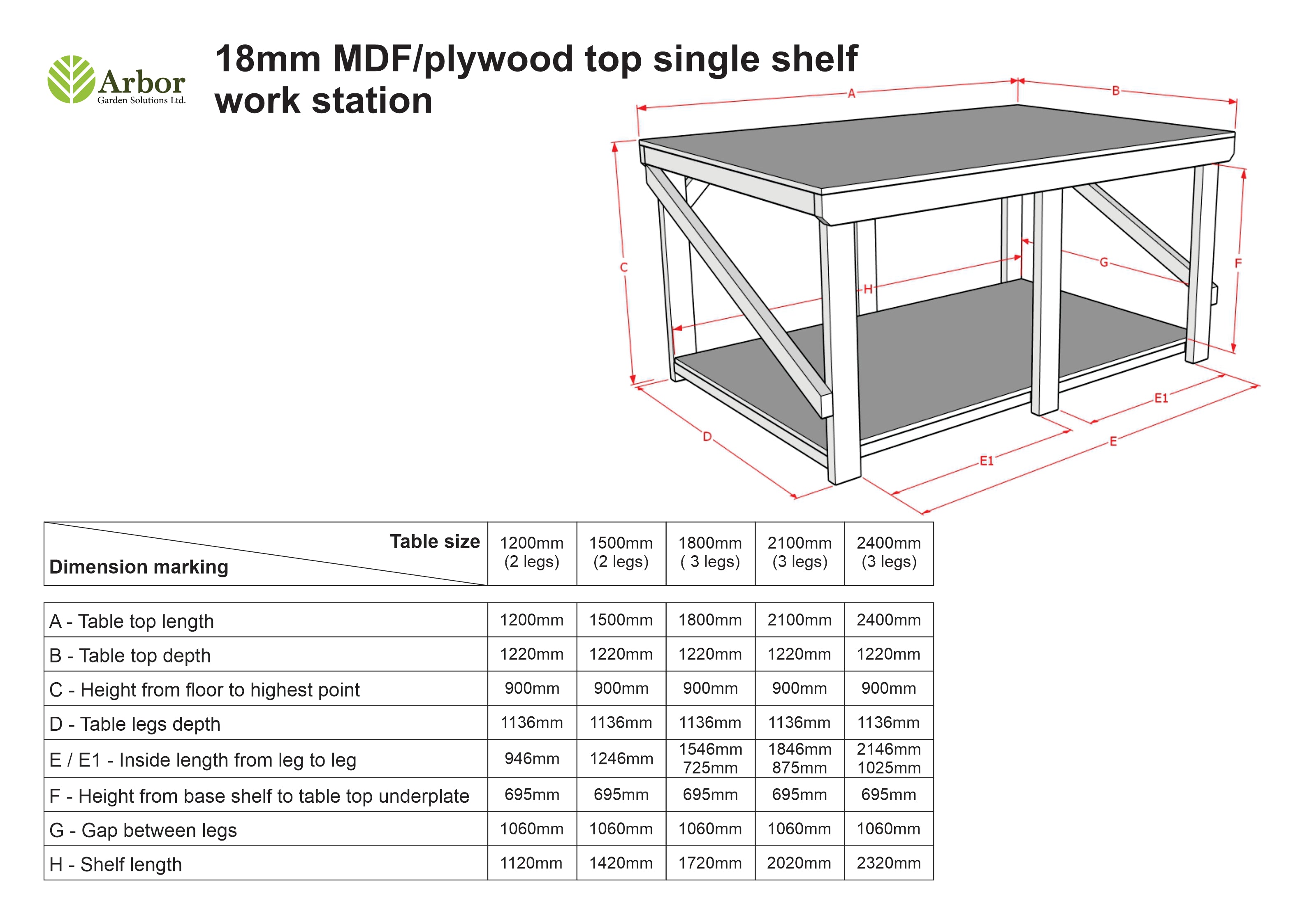 - Workbenches starting from 4ft to 5ft will have 2 sets of legs, 6ft to 8ft workbenches will have 3 sets of legs