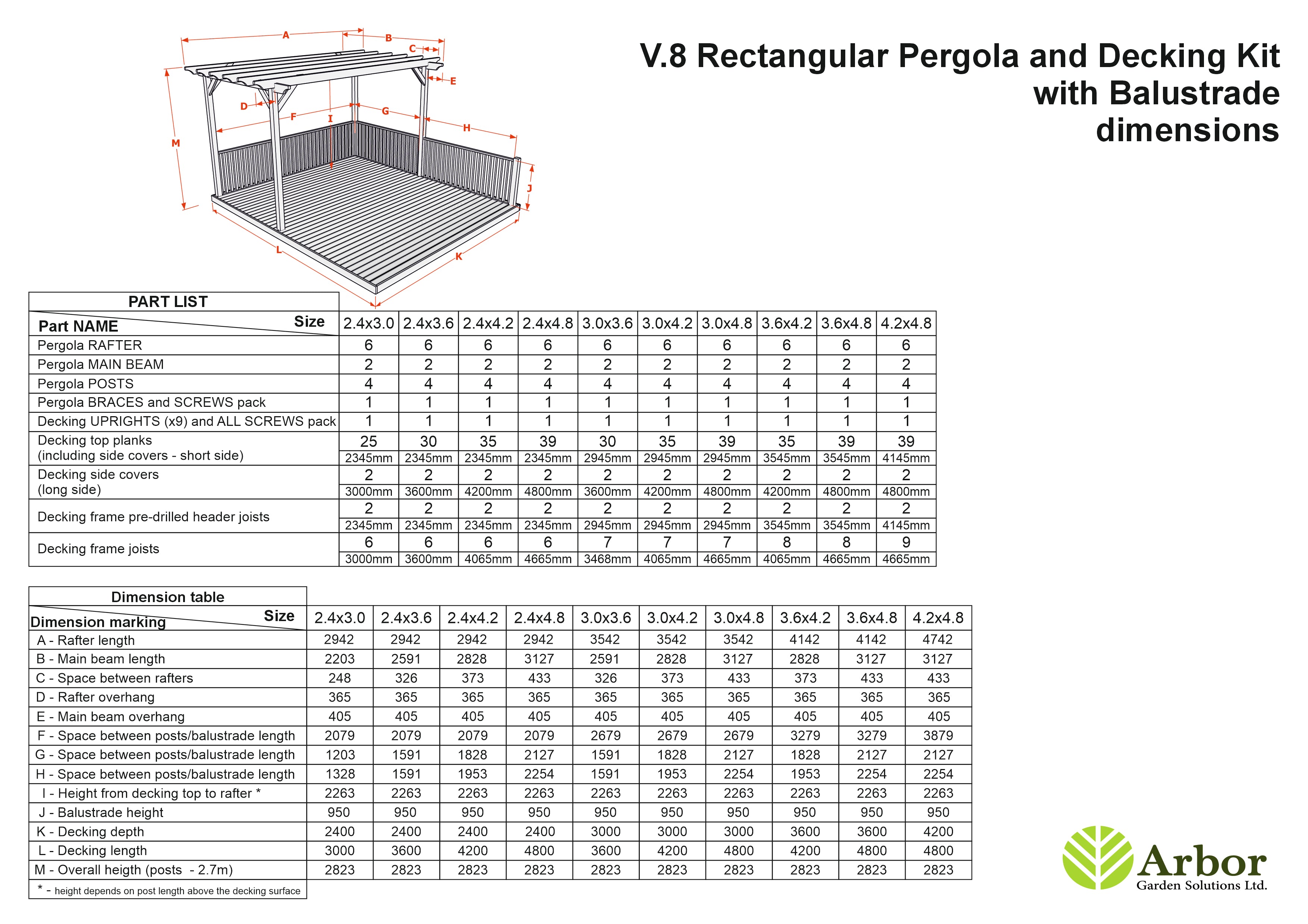 Rectangular Pergola And Decking Kit With Balustrade V.8