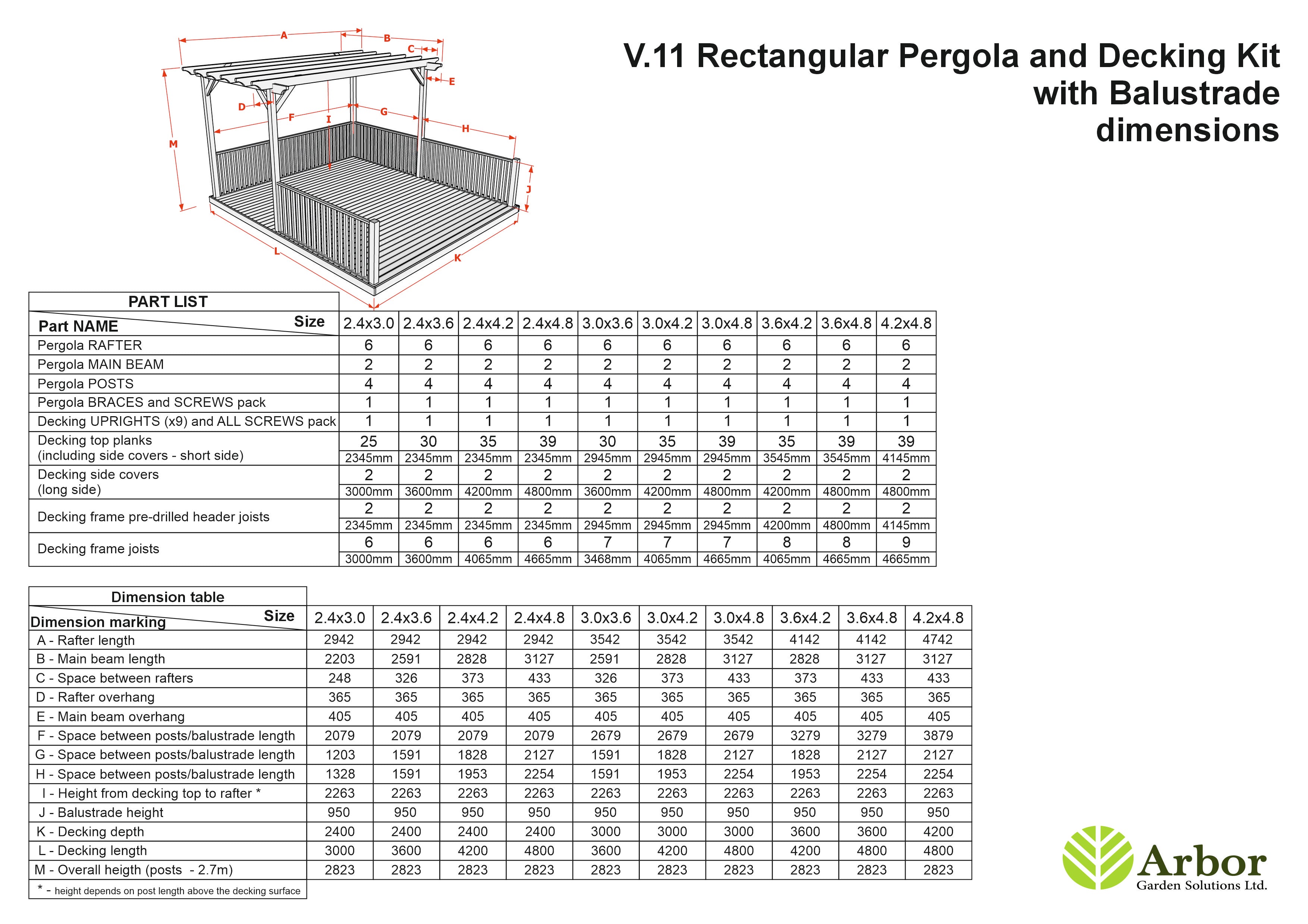 1. Generic assembly instructions for pergola and decking kit with balustrade