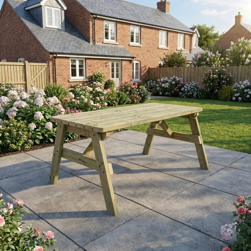 Read more about our environmental policies - Our picnic tables are crafted from high-quality pressure-treated timber, known for its durability and resistance to decay, insects, and moisture. This treatment ensures your picnic table remains strong and long-lasting, making it perfect for outdoor use in gardens, patios, and public spaces.