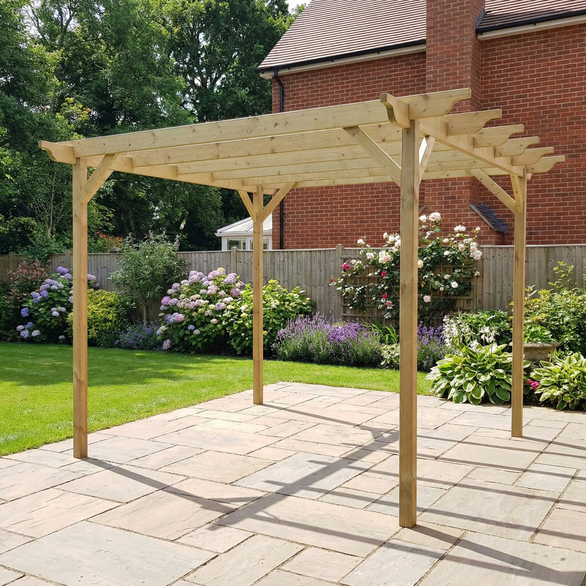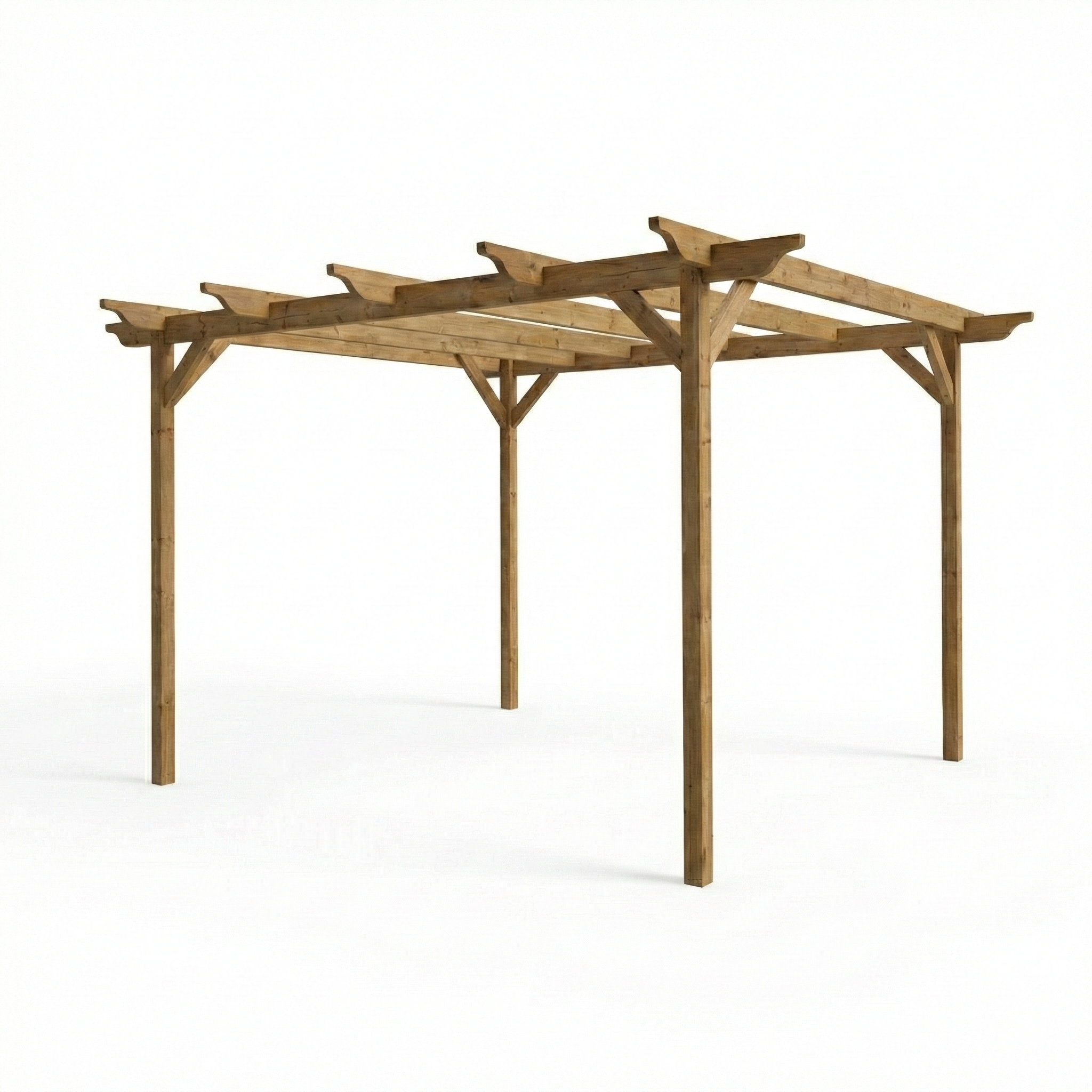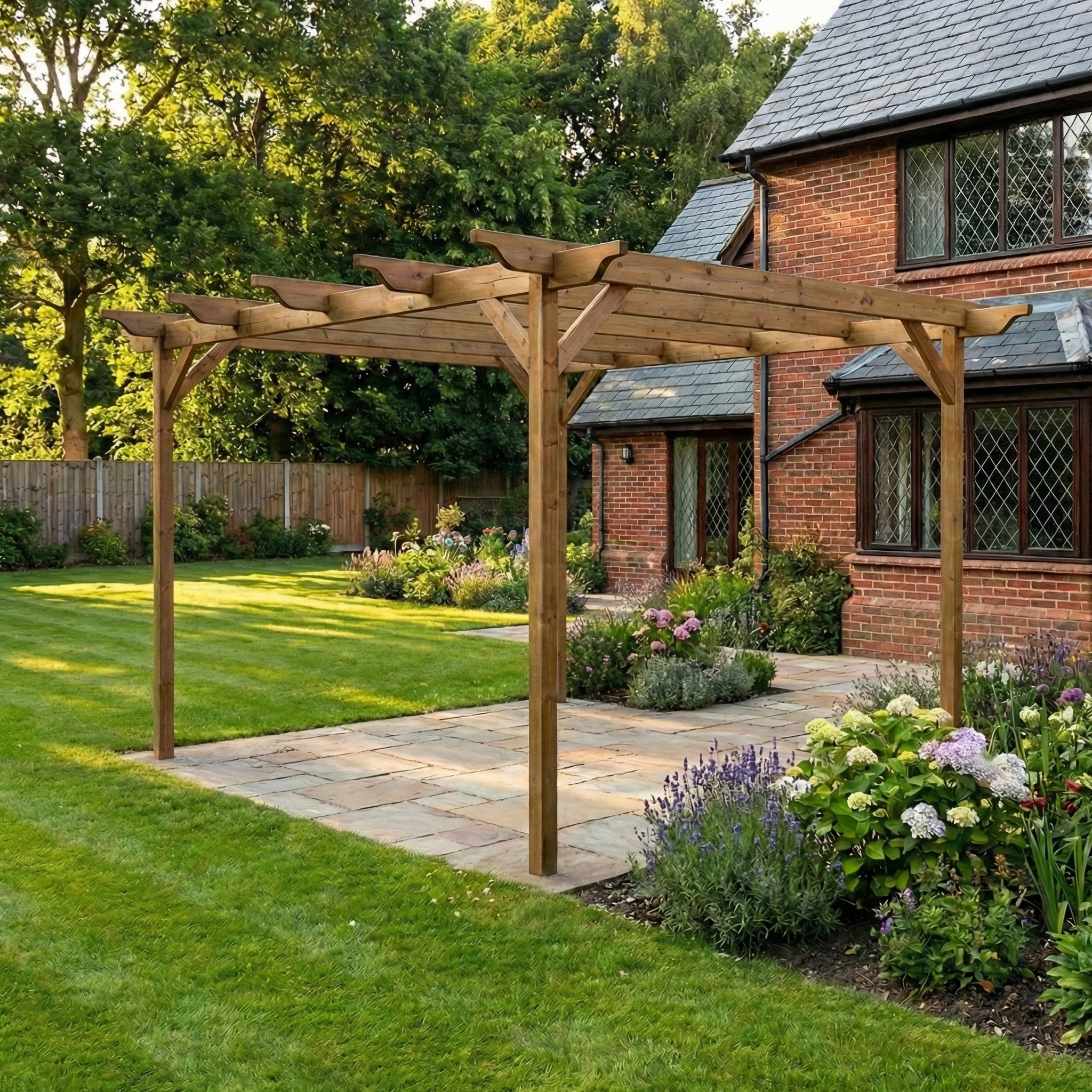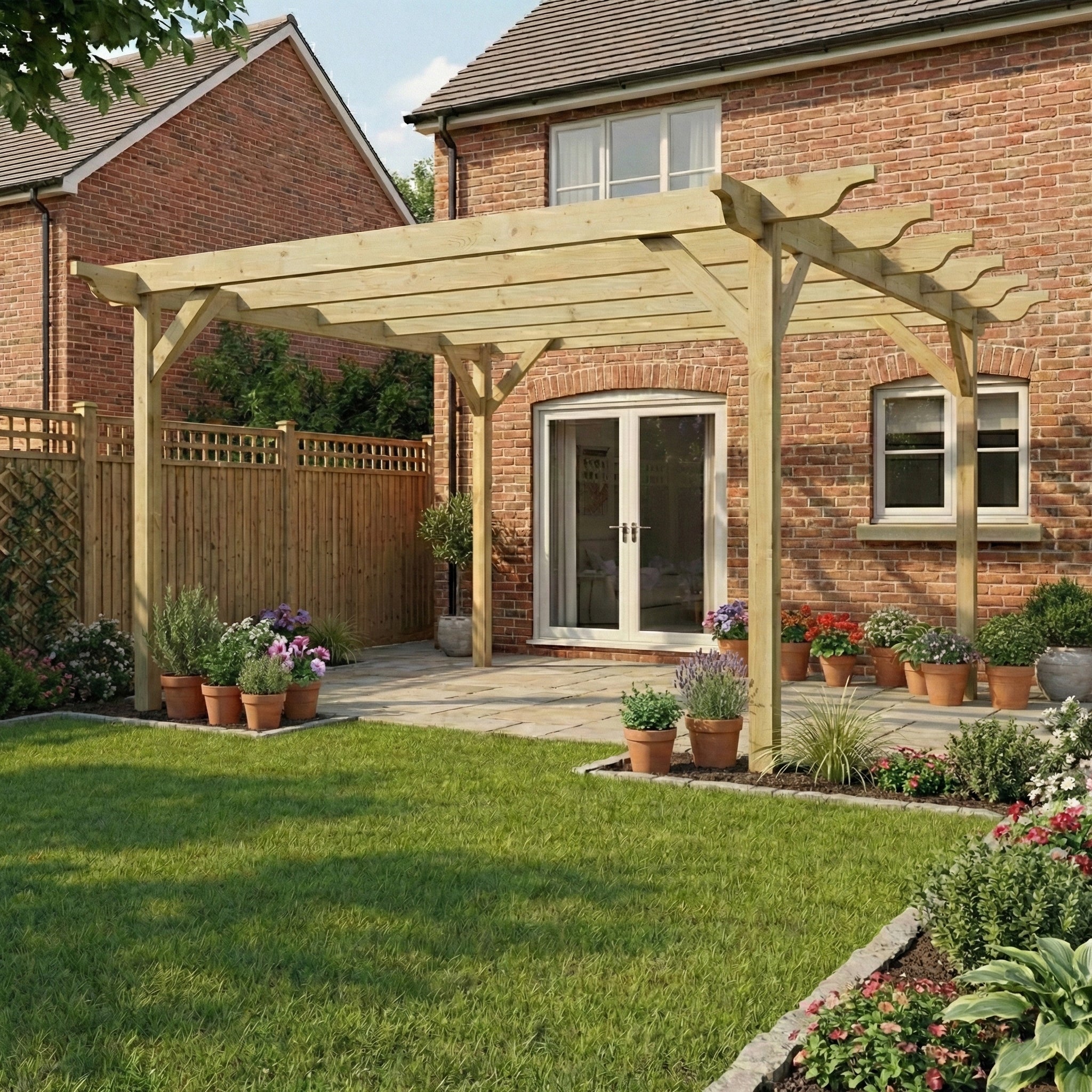 Enhance your outdoor living space with our Wooden Pergola, a stylish and functional addition that seamlessly extends your home into your garden. Designed to attach directly to your house, this pergola creates a shaded area perfect for relaxation, dining, or entertaining.