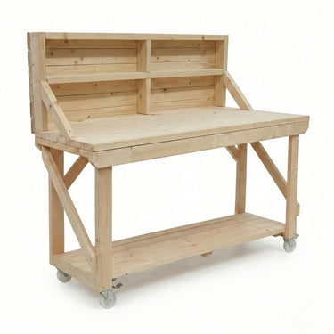 Acorn Wooden Workbench With Back Panel and Wheels