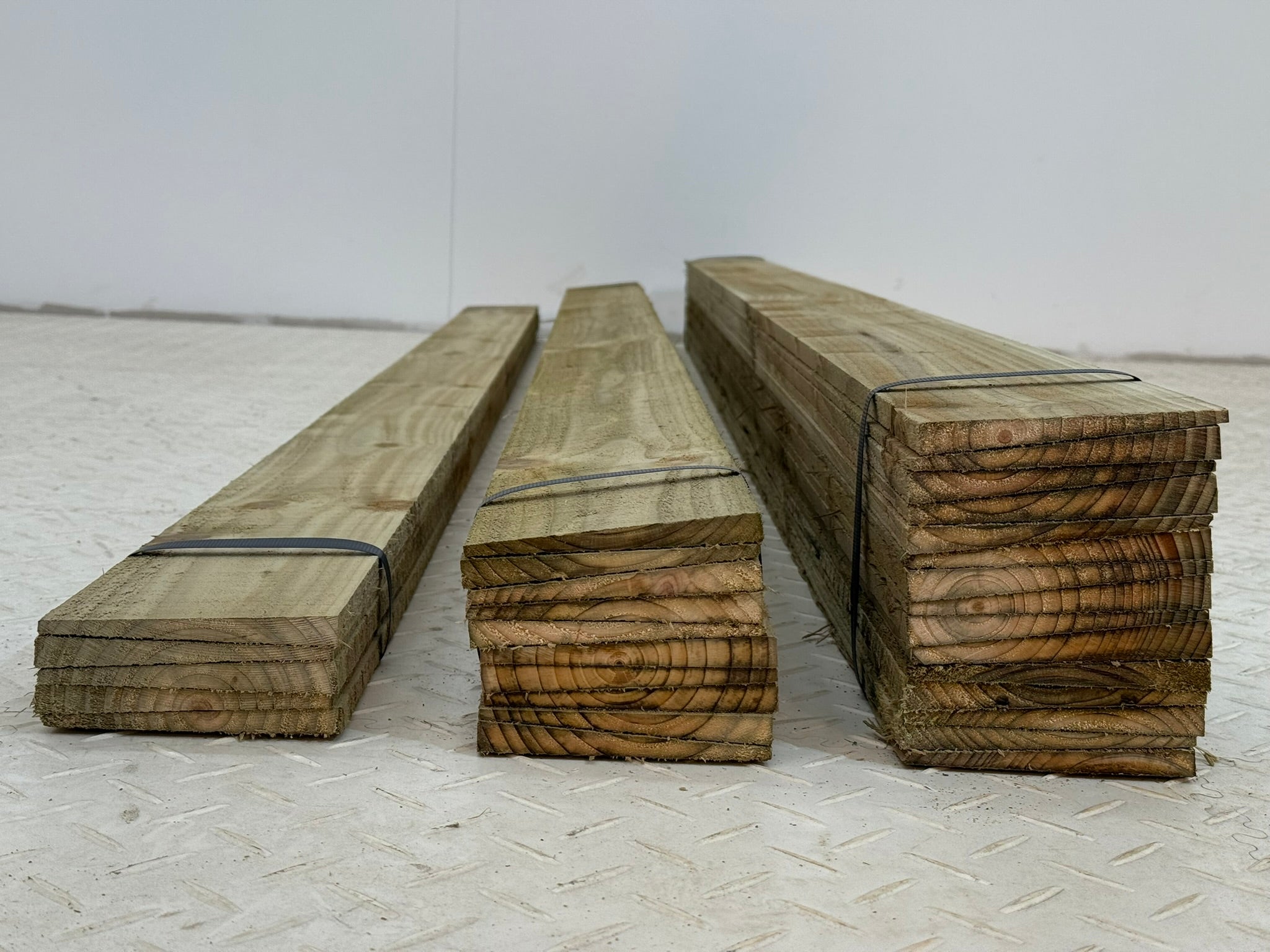Feather Edge Fence Board Treated 11mm is a wooden fencing board specially treated for durability. It measures 125mm wide and 11mm thick. The "feather edge" refers to the board's tapered design, which gives it a traditional and aesthetic appearance, making it ideal for building strong, long-lasting fences.