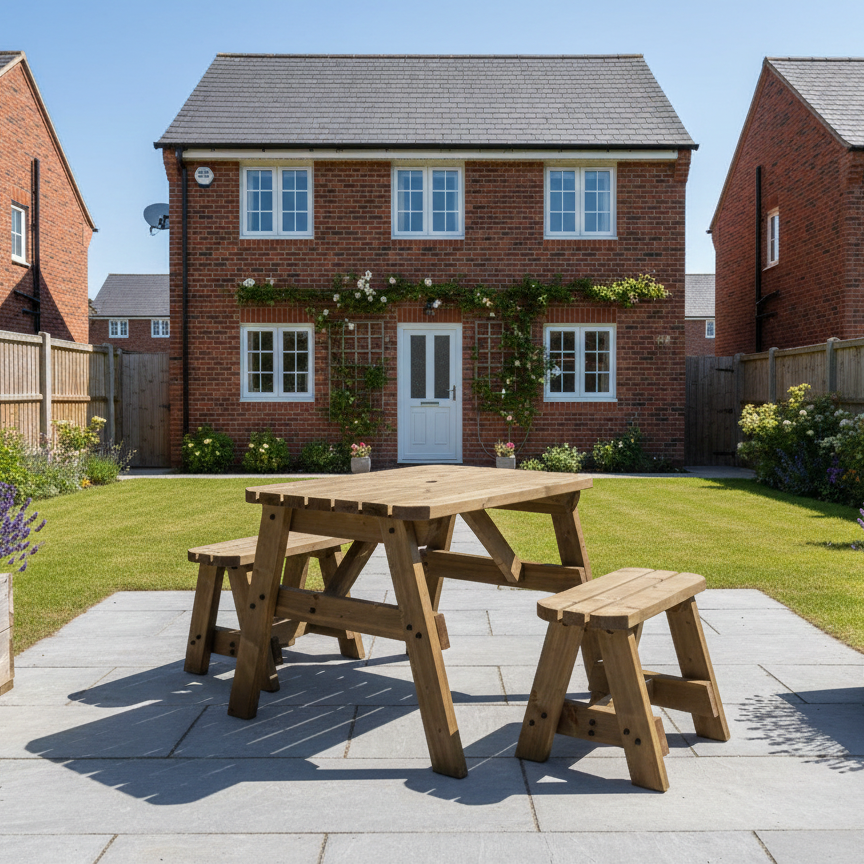 Read more about our environmental policies - Our picnic tables are crafted from high-quality pressure-treated timber, known for its durability and resistance to decay, insects, and moisture. This treatment ensures your picnic table remains strong and long-lasting, making it perfect for outdoor use in gardens, patios, and public spaces.