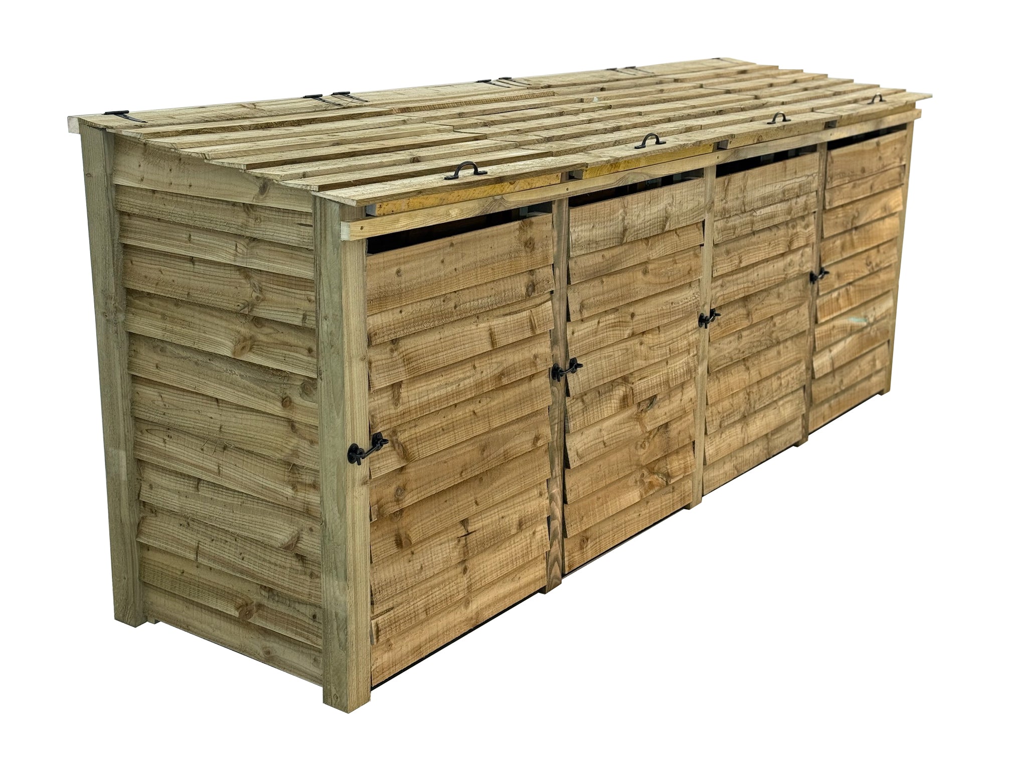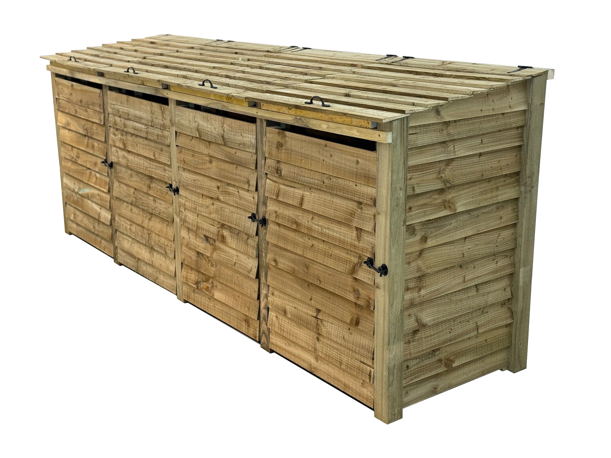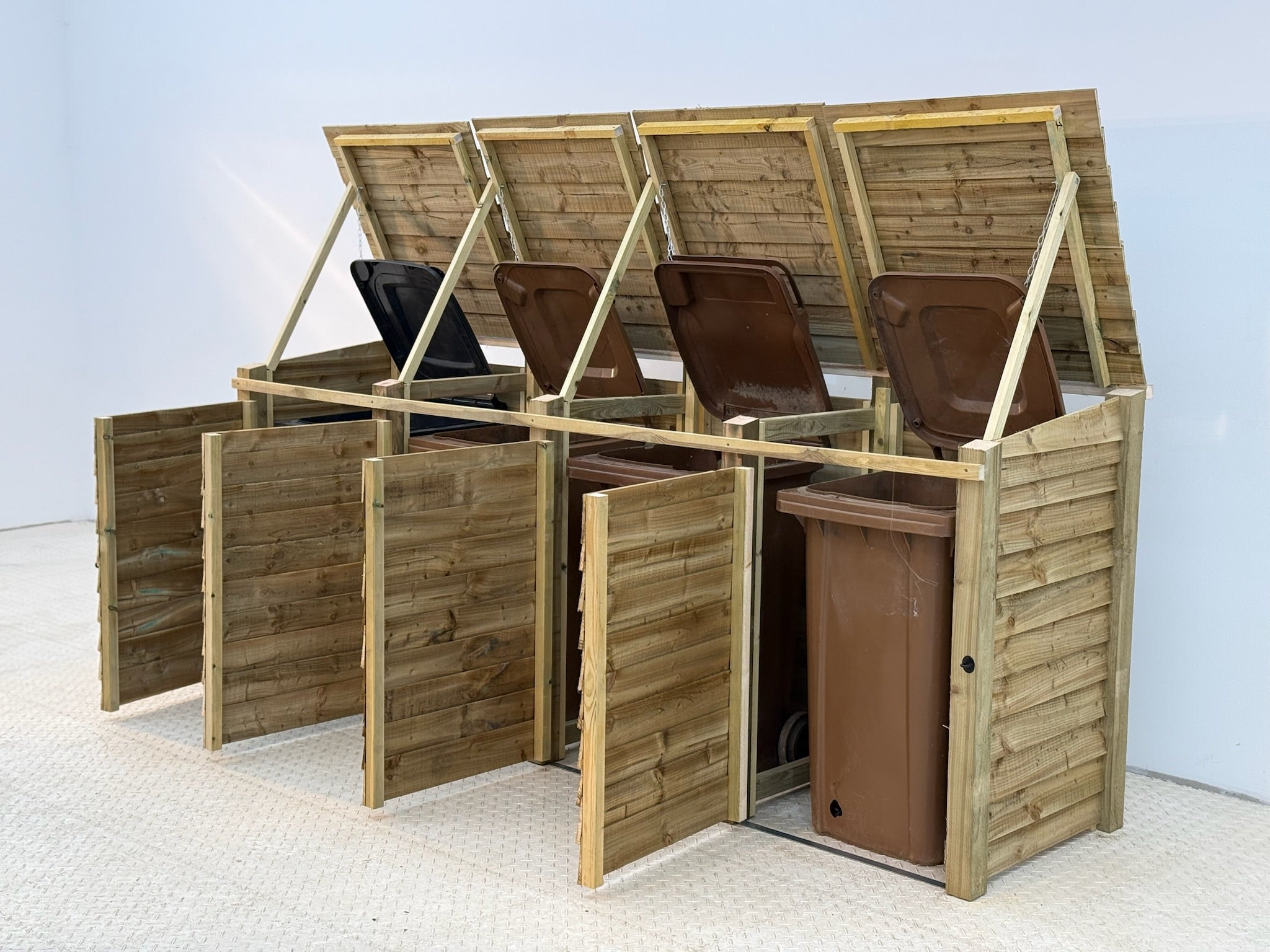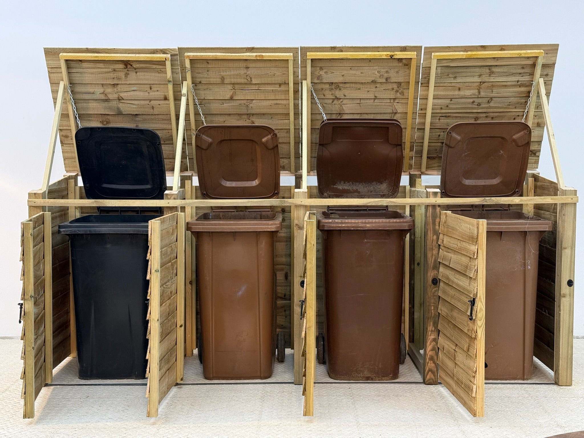 Read more about our environmental policies - Our wheelie bin storages are crafted from high-quality pressure-treated timber, known for its durability and resistance to decay, insects, and moisture. This treatment ensures your wheelie bin storage remains strong and long-lasting, making it perfect for outdoor use in gardens, patios, and public spaces.