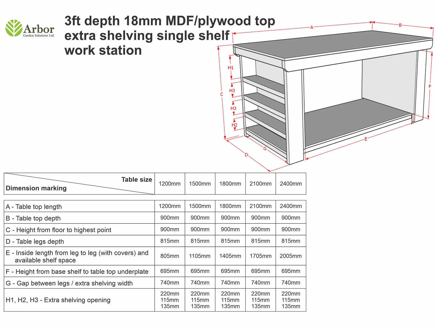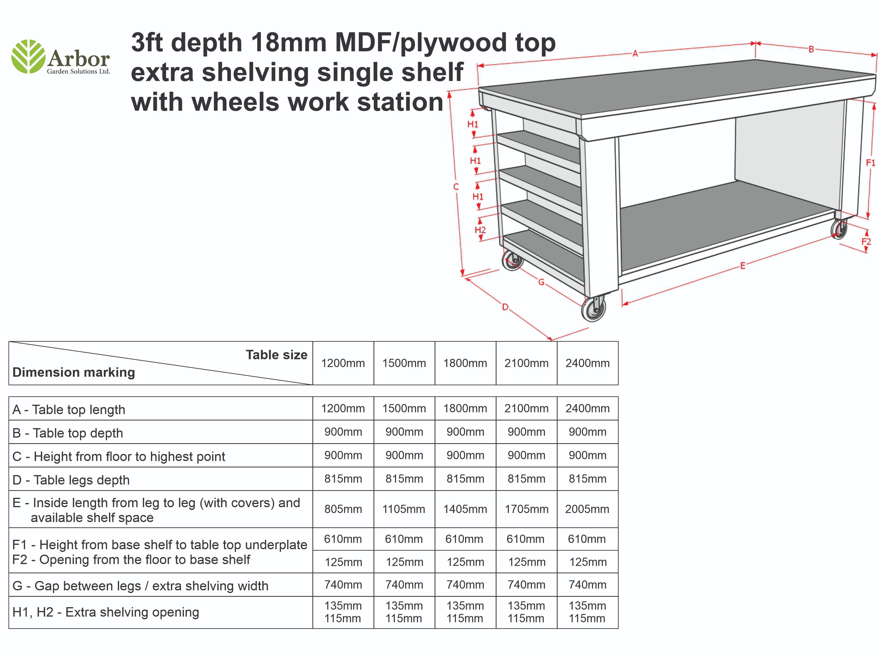 Please note: Imperial measurements are for representative purposes. Workbenches will cut in metrics 4ft - 120cm, 5ft - 150cm, 6ft - 180cm and etc.