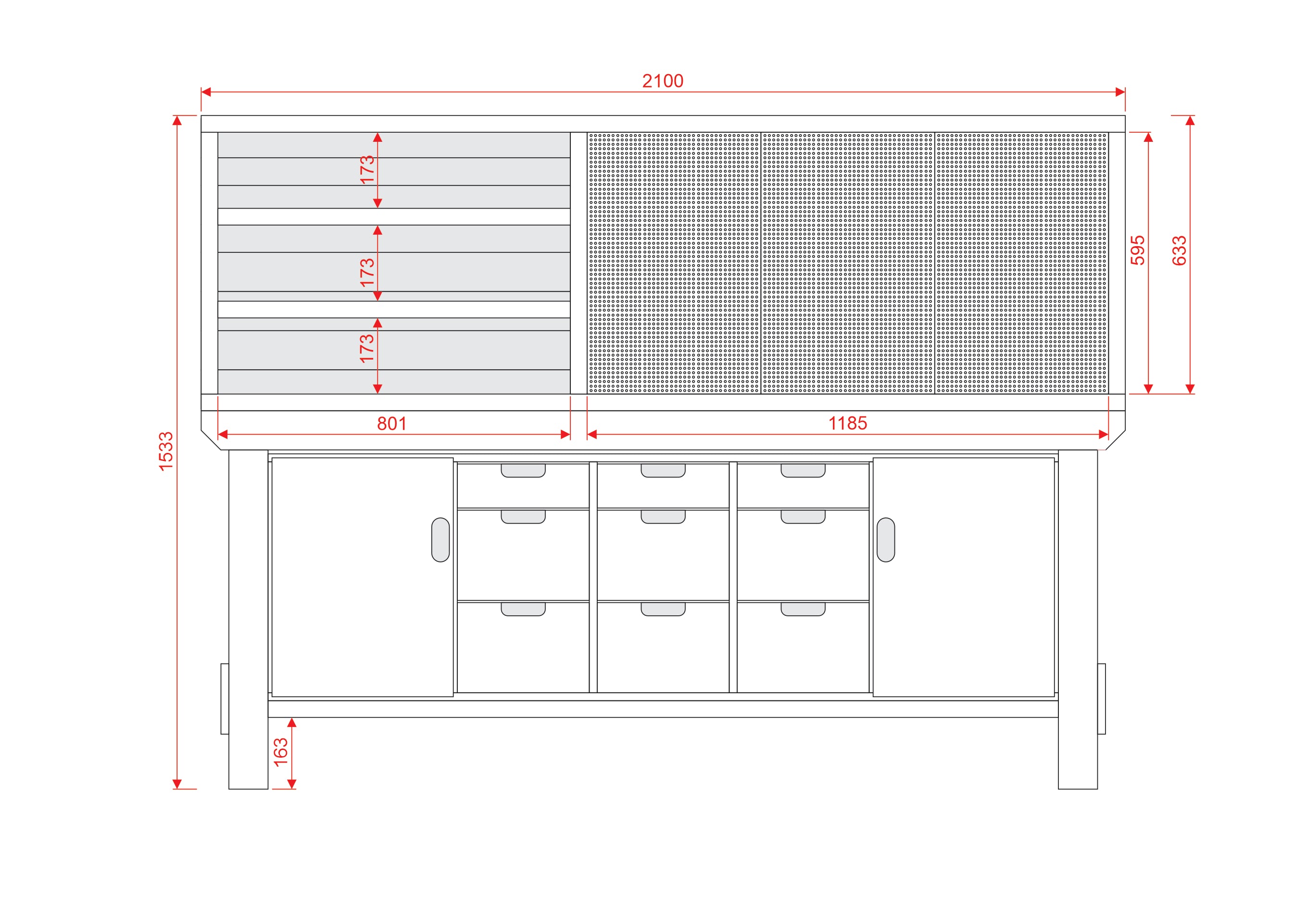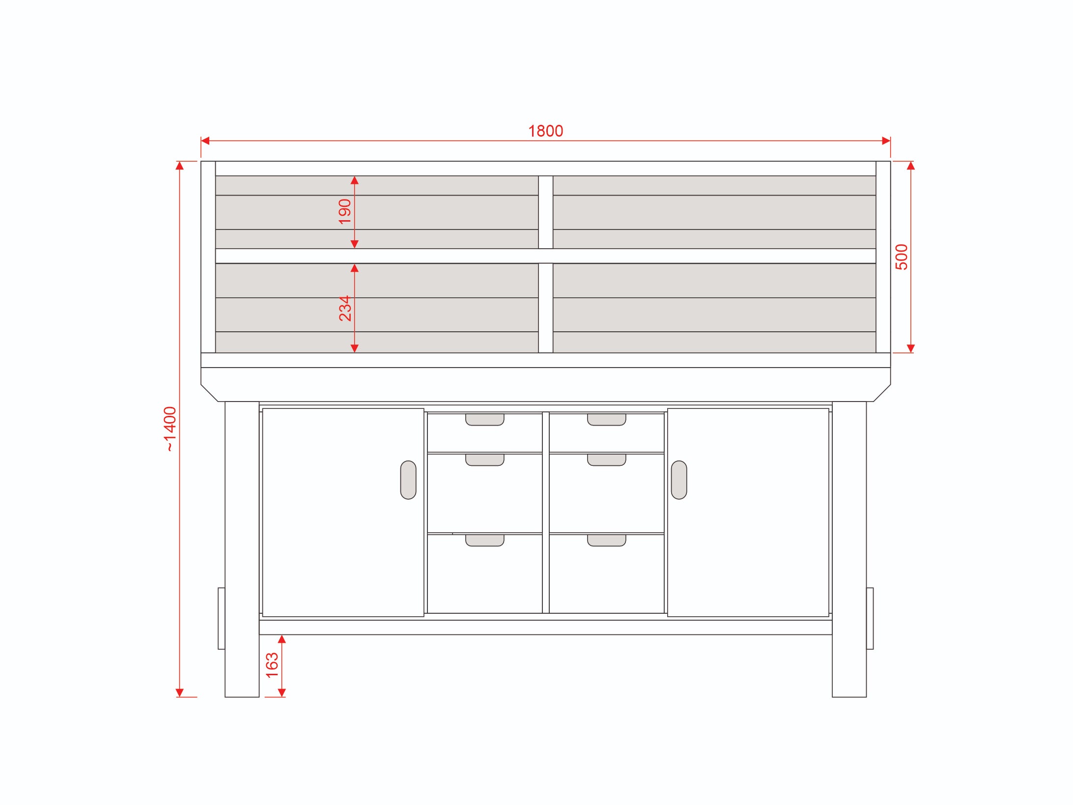 This workbench is available in multiple sizes, ranging from 1500mm to 2100mm in width, with a standard height of 900mm and depth of 640mm. Each unit is beautifully finished, reflecting quality craftsmanship and attention to detail.