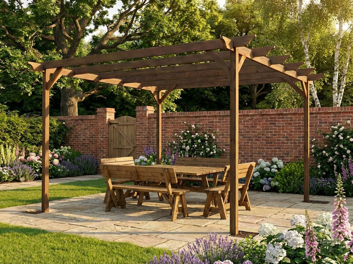 Read more about our environmental policies - To keep your wooden pergola in top condition, regularly clean it with mild soapy water to remove dirt, mold, and mildew. Apply a high-quality wood sealant or stain every 1-3 years to protect against moisture and UV damage. Inspect for cracks, loose fixings, or signs of wear, tightening or replacing hardware as needed. If painting, use a durable exterior wood paint designed for treated timber. Trim climbing plants to prevent excess weight and trapped moisture, which can lead to decay. In areas with harsh weather, consider using protective covers or additional treatments to shield your pergola. Ensuring good airflow around the structure will help minimize moisture buildup and extend its lifespan. With proper care, your pergola will remain a beautiful and sturdy outdoor feature for years to come. 🌿🏡