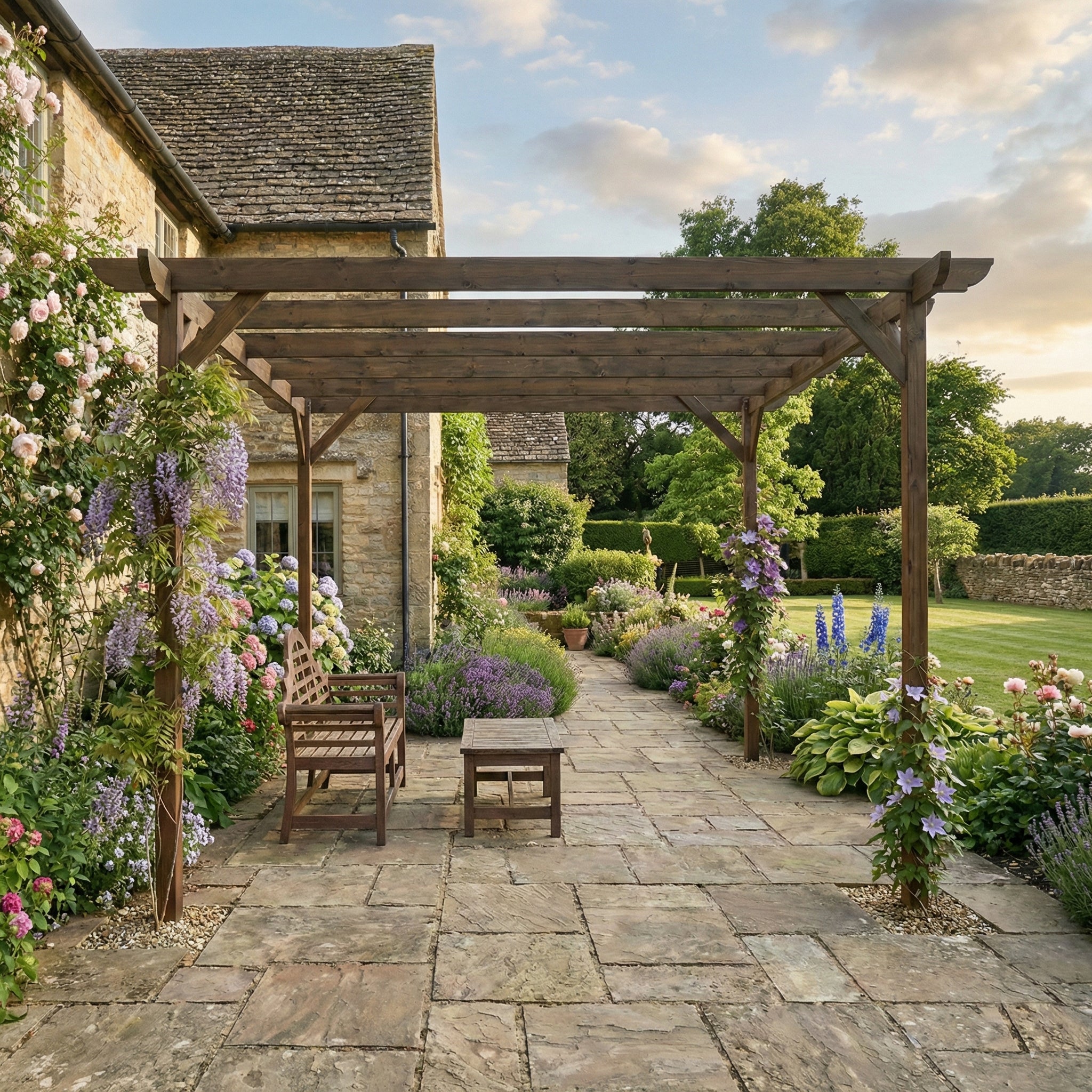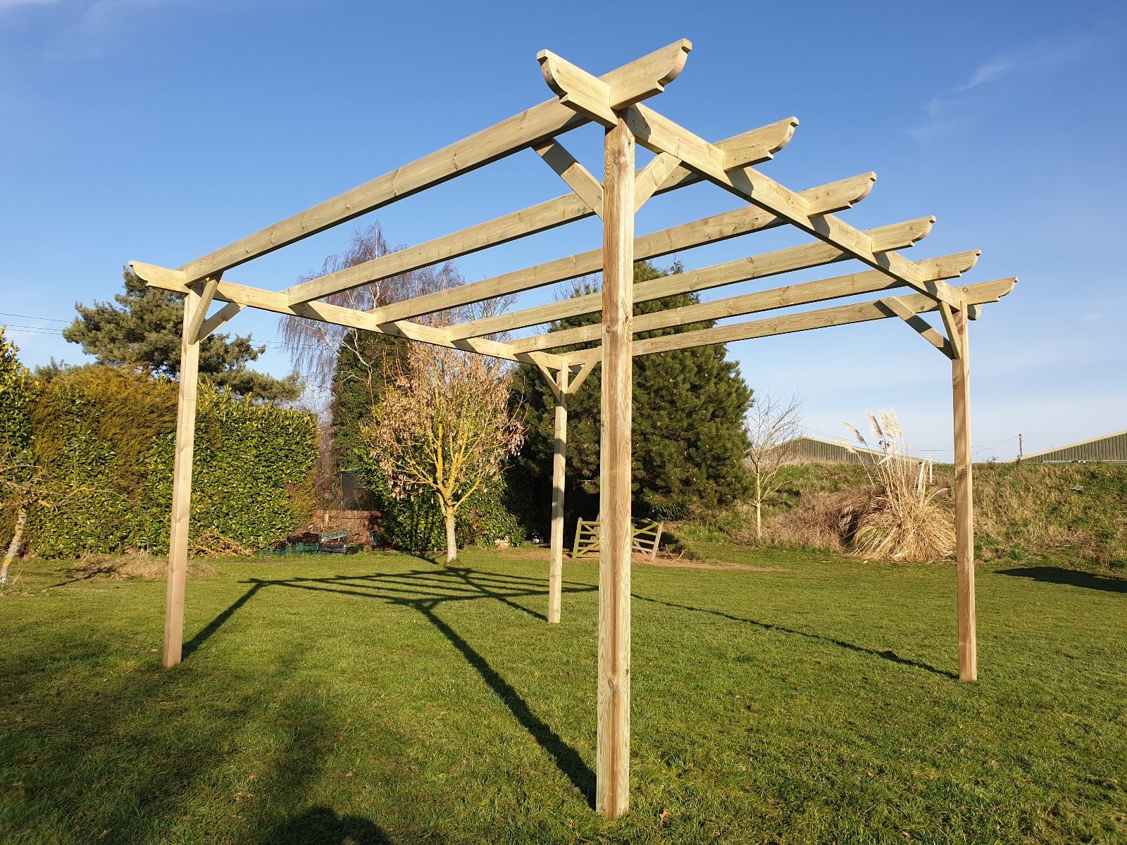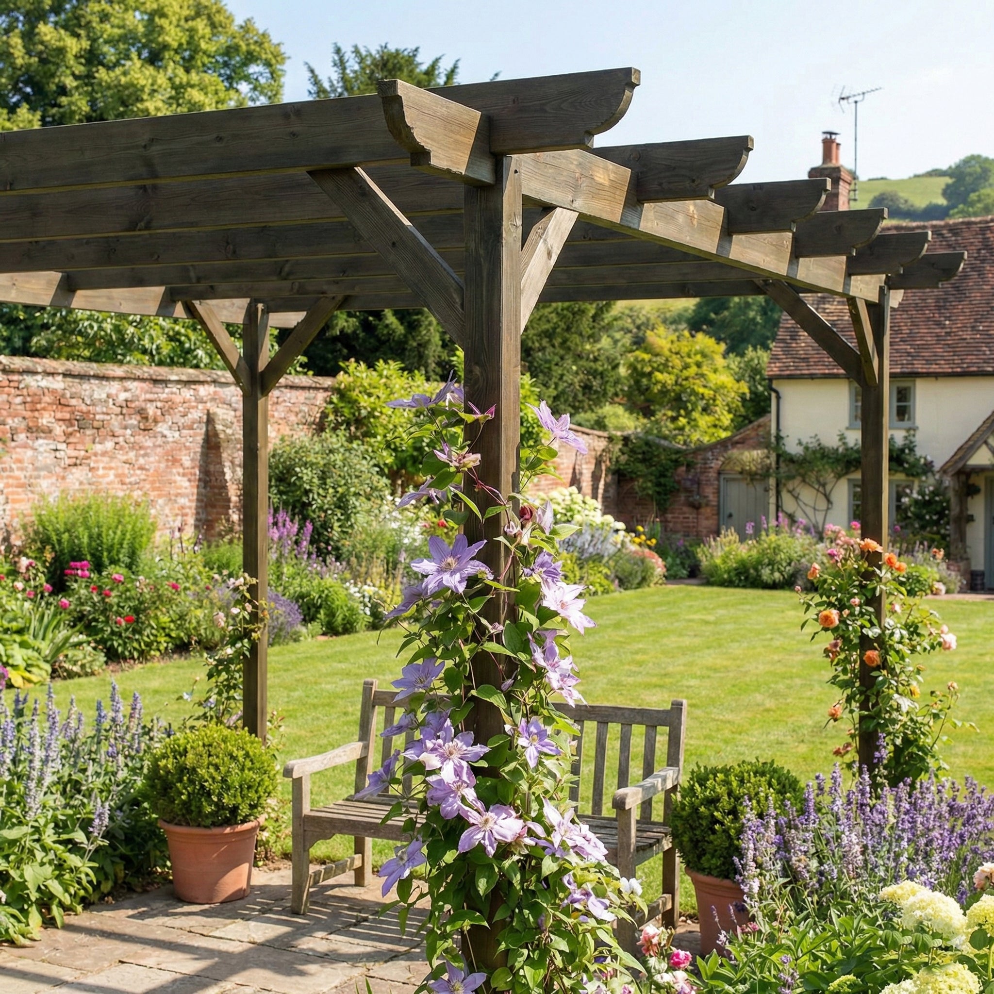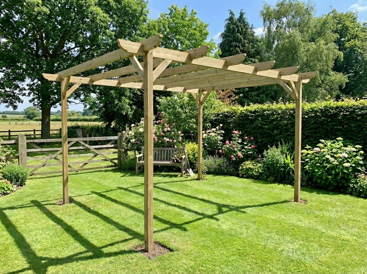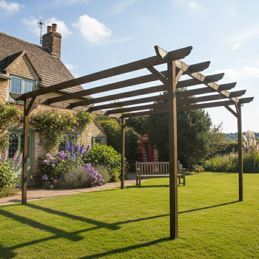 Read more about our environmental policies - To keep your wooden pergola in top condition, regularly clean it with mild soapy water to remove dirt, mold, and mildew. Apply a high-quality wood sealant or stain every 1-3 years to protect against moisture and UV damage. Inspect for cracks, loose fixings, or signs of wear, tightening or replacing hardware as needed. If painting, use a durable exterior wood paint designed for treated timber. Trim climbing plants to prevent excess weight and trapped moisture, which can lead to decay. In areas with harsh weather, consider using protective covers or additional treatments to shield your pergola. Ensuring good airflow around the structure will help minimize moisture buildup and extend its lifespan. With proper care, your pergola will remain a beautiful and sturdy outdoor feature for years to come. 🌿🏡