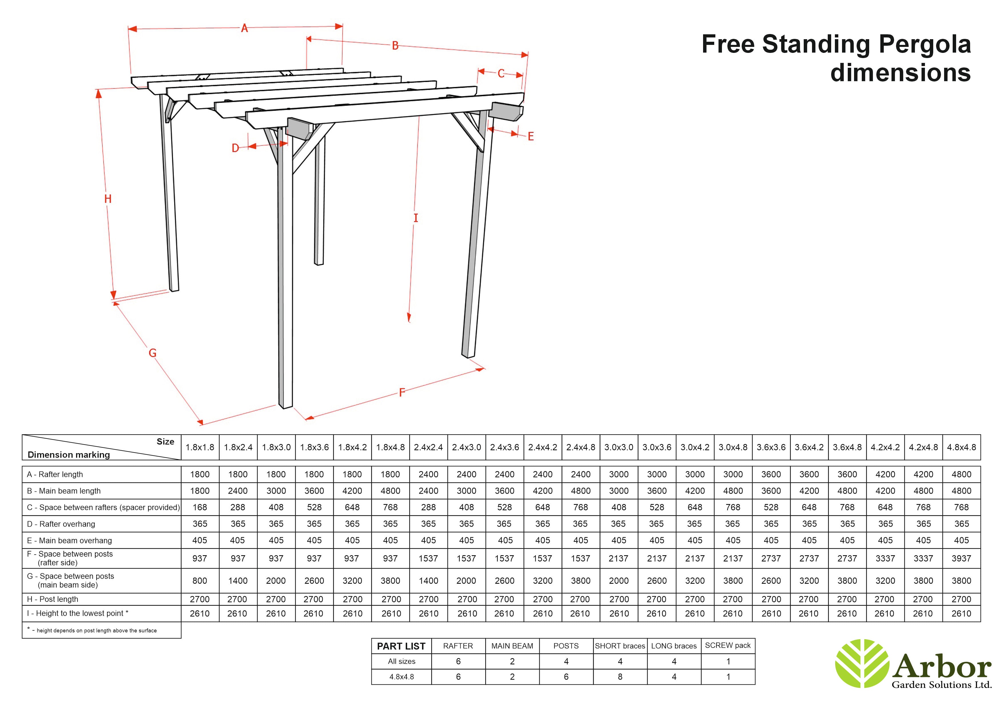 We would recommend using the spike pergola feet on surfaces such as grass, soil or if you are concreting the feet in place. The bolt down pergola feet is recommended for surfaces such as concrete or decking. Supplied pergola uprights are 2.7m in length. Post shoes can be found HERE