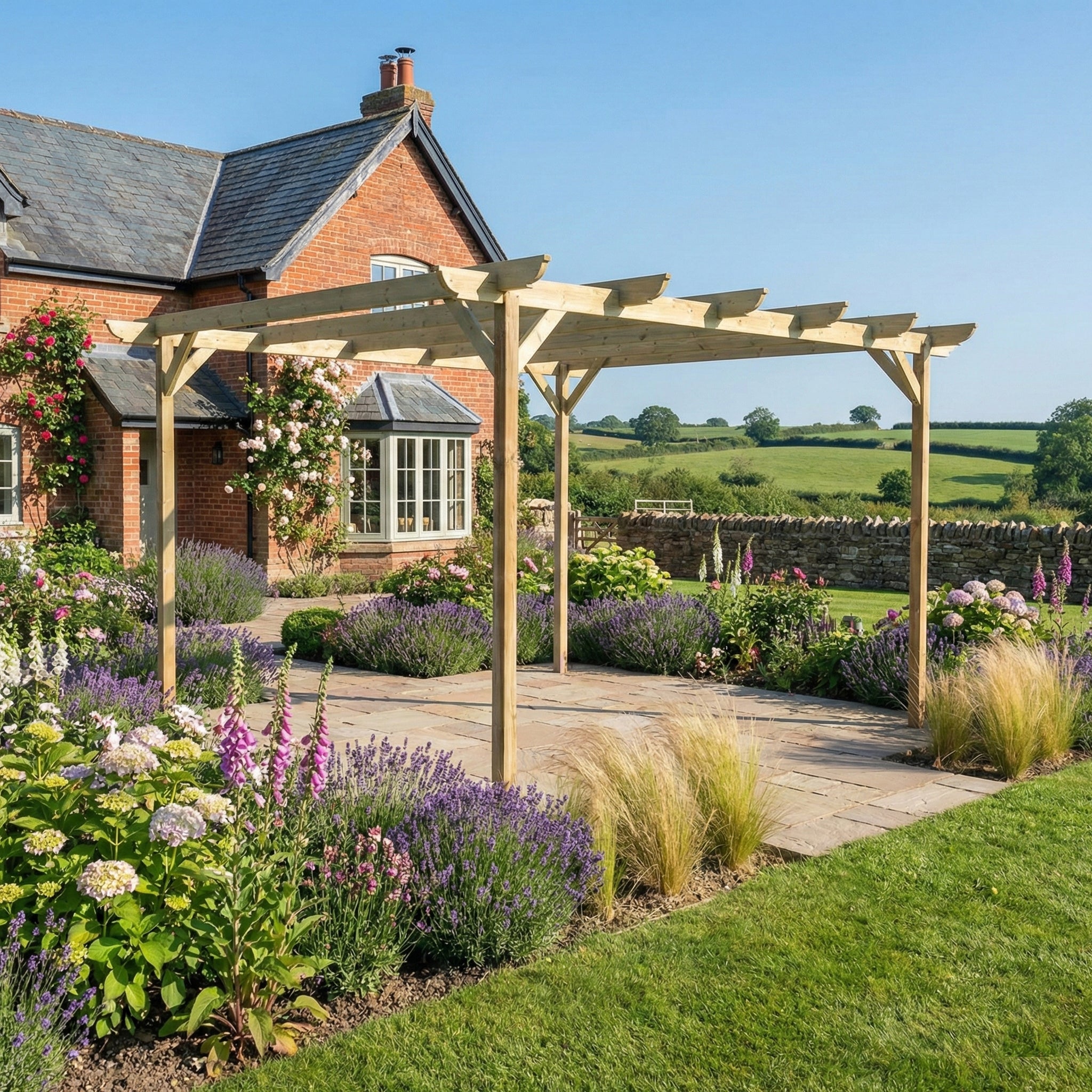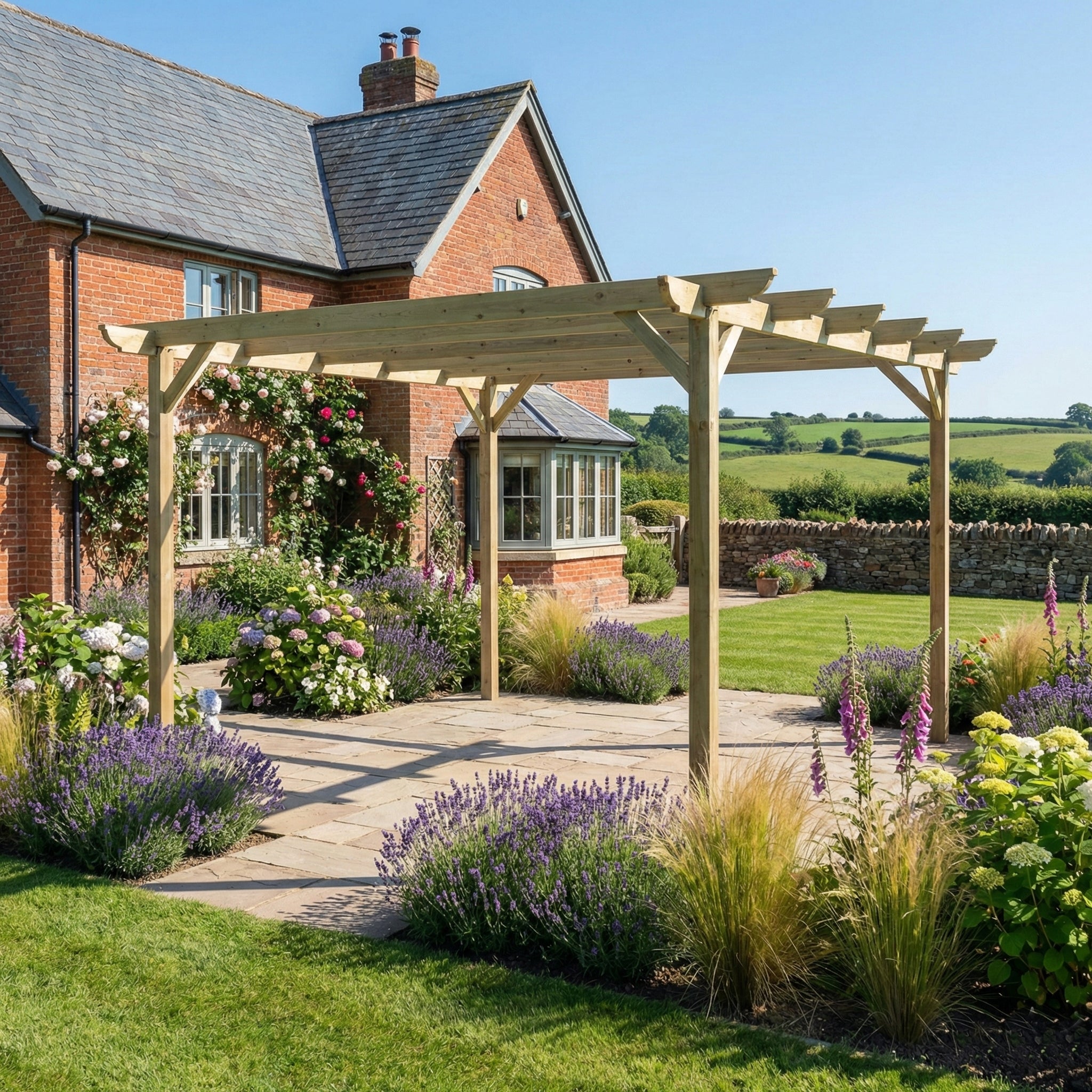 Enhance your outdoor living space with our Wooden Pergola, a stylish and functional addition that seamlessly extends your home into your garden. Designed to attach directly to your house, this pergola creates a shaded area perfect for relaxation, dining, or entertaining.
