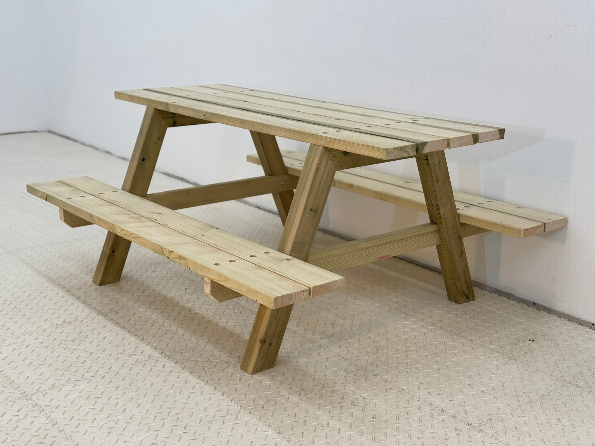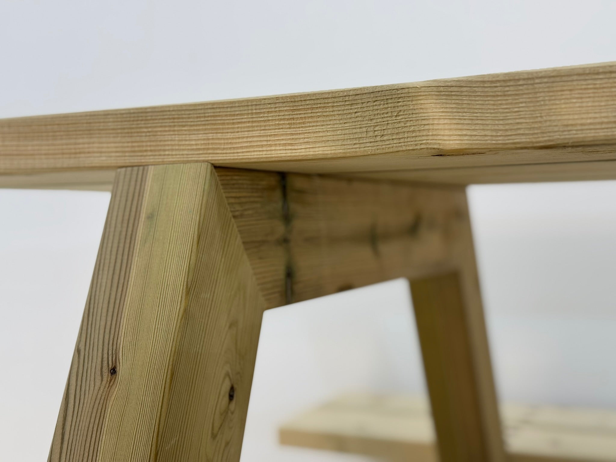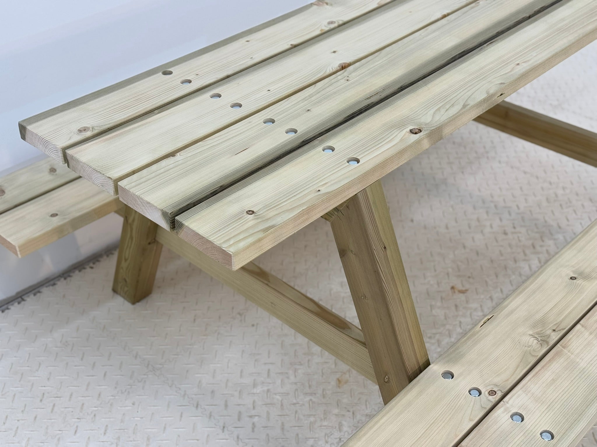 The seating surface is made from 38mm x 130mm construction-grade wooden planks, providing excellent strength and resistance to everyday wear. The heavy-duty leg frame is constructed from substantial 70mm x 100mm timber posts, ensuring stability and long-term performance.