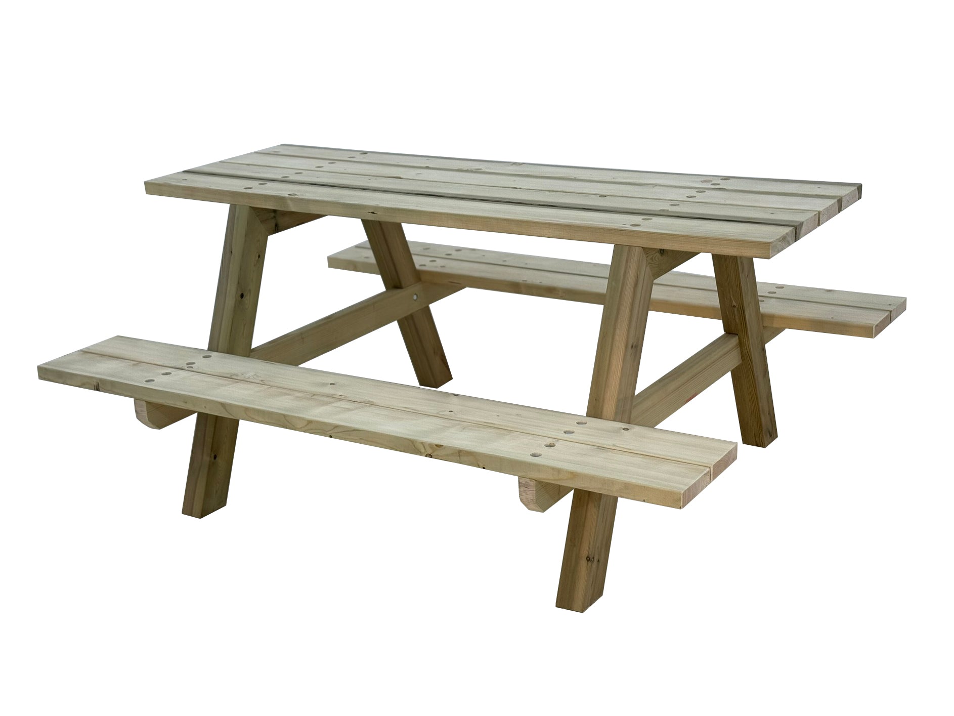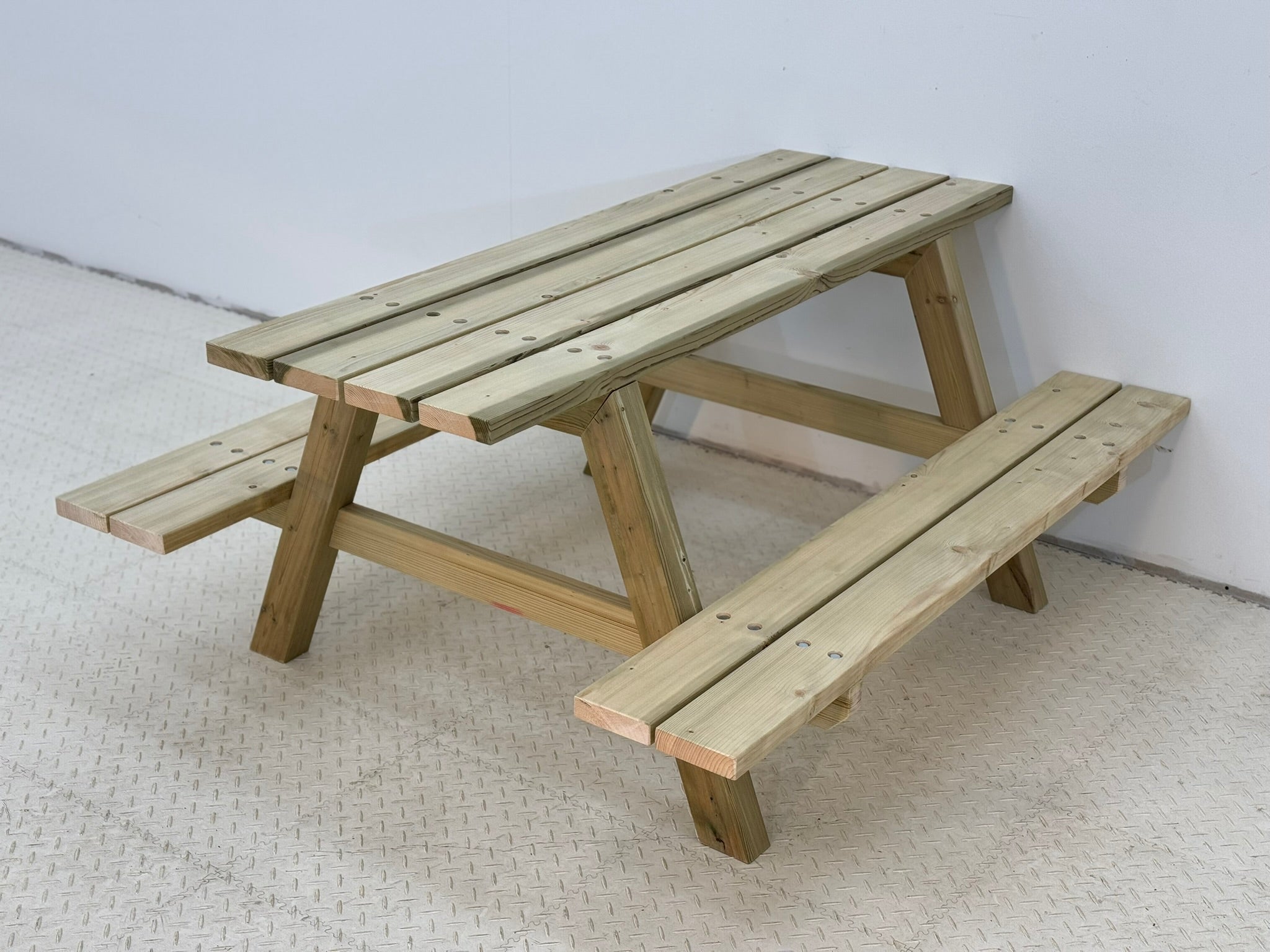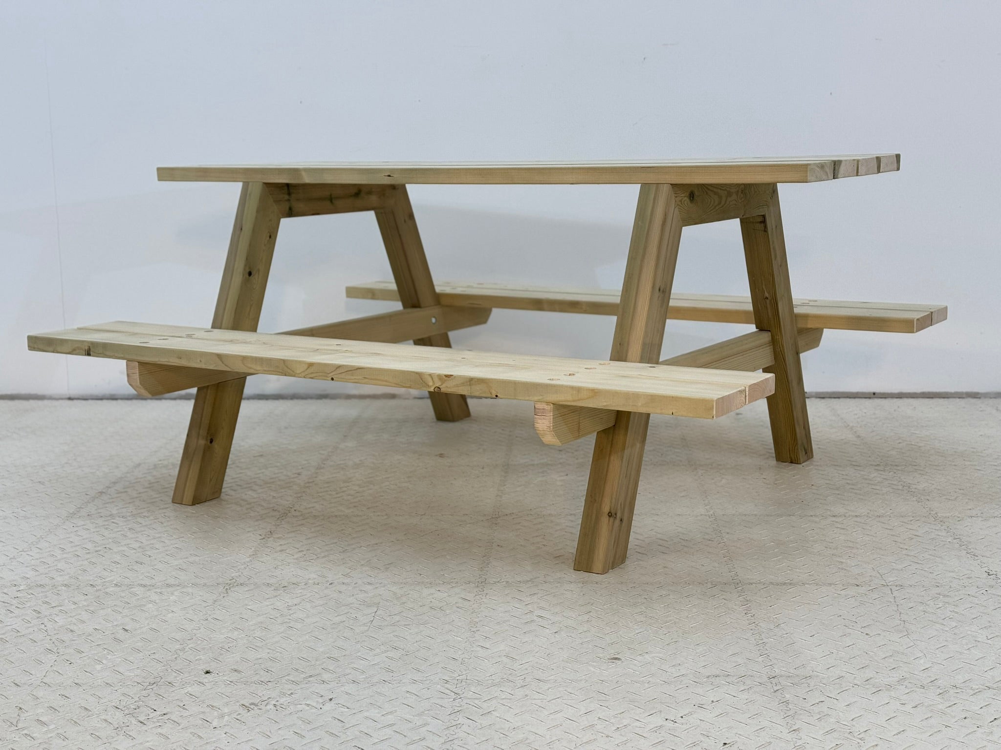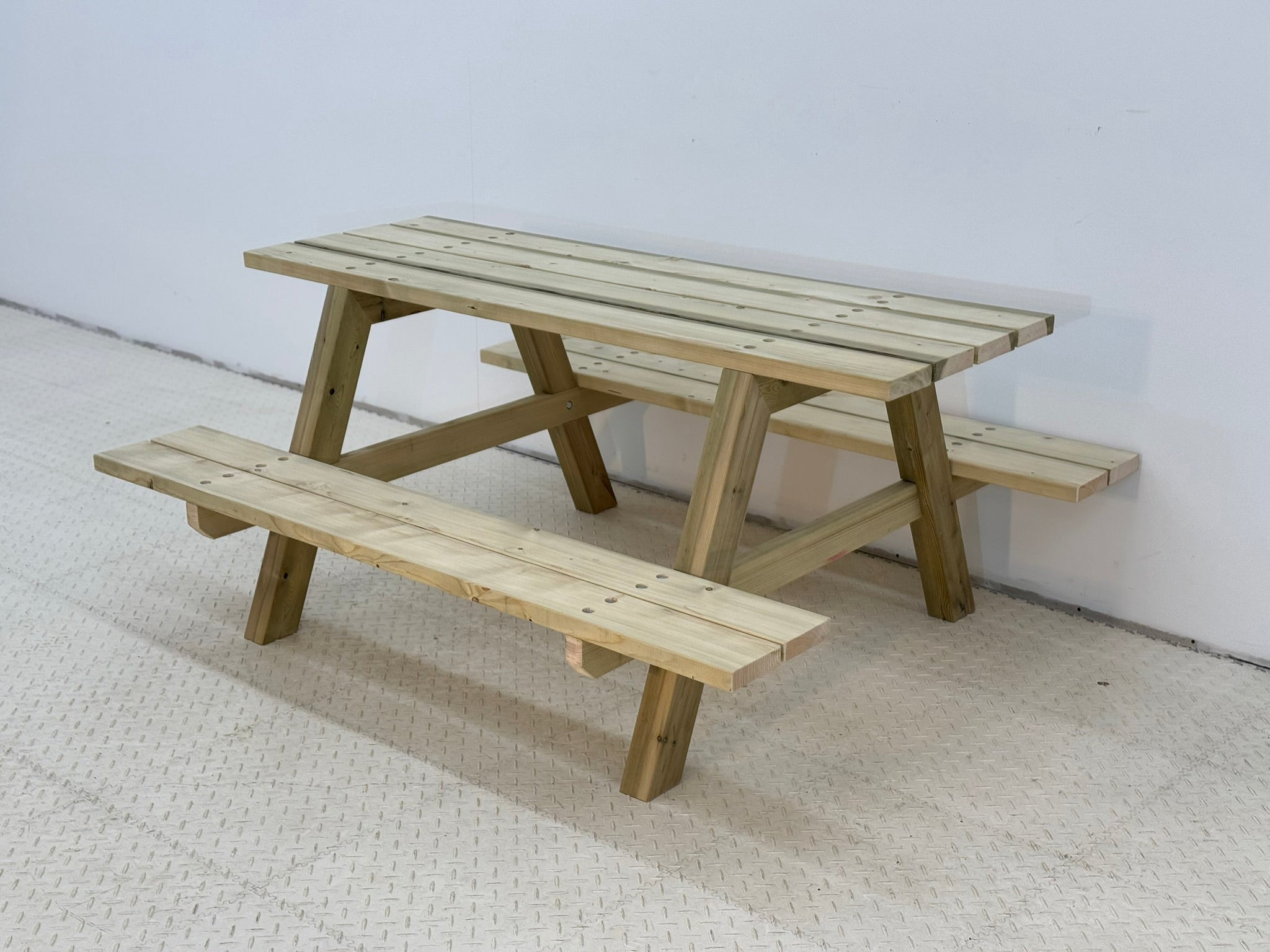 The seating surface is made from 38mm x 130mm construction-grade wooden planks, providing excellent strength and resistance to everyday wear. The heavy-duty leg frame is constructed from substantial 70mm x 100mm timber posts, ensuring stability and long-term performance.