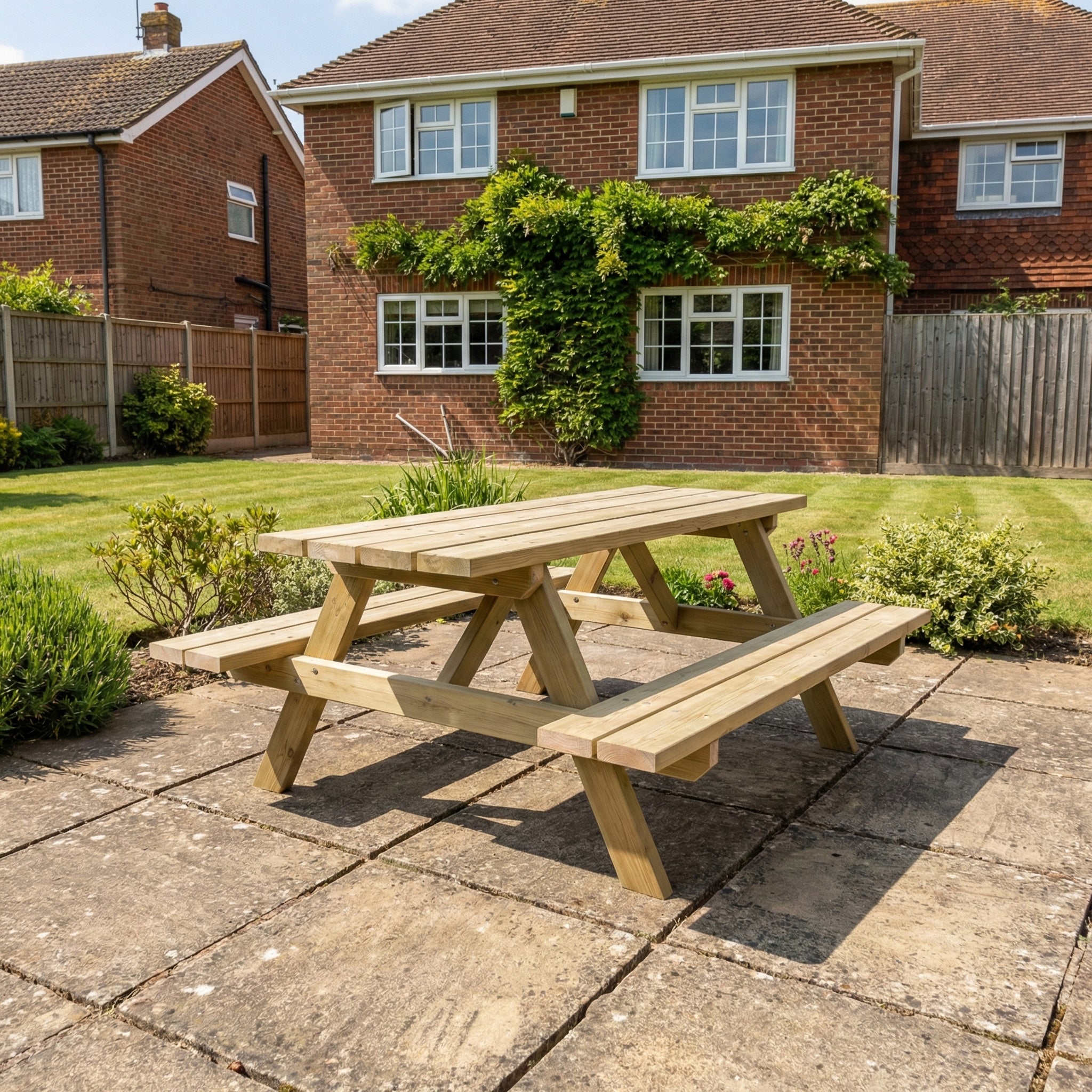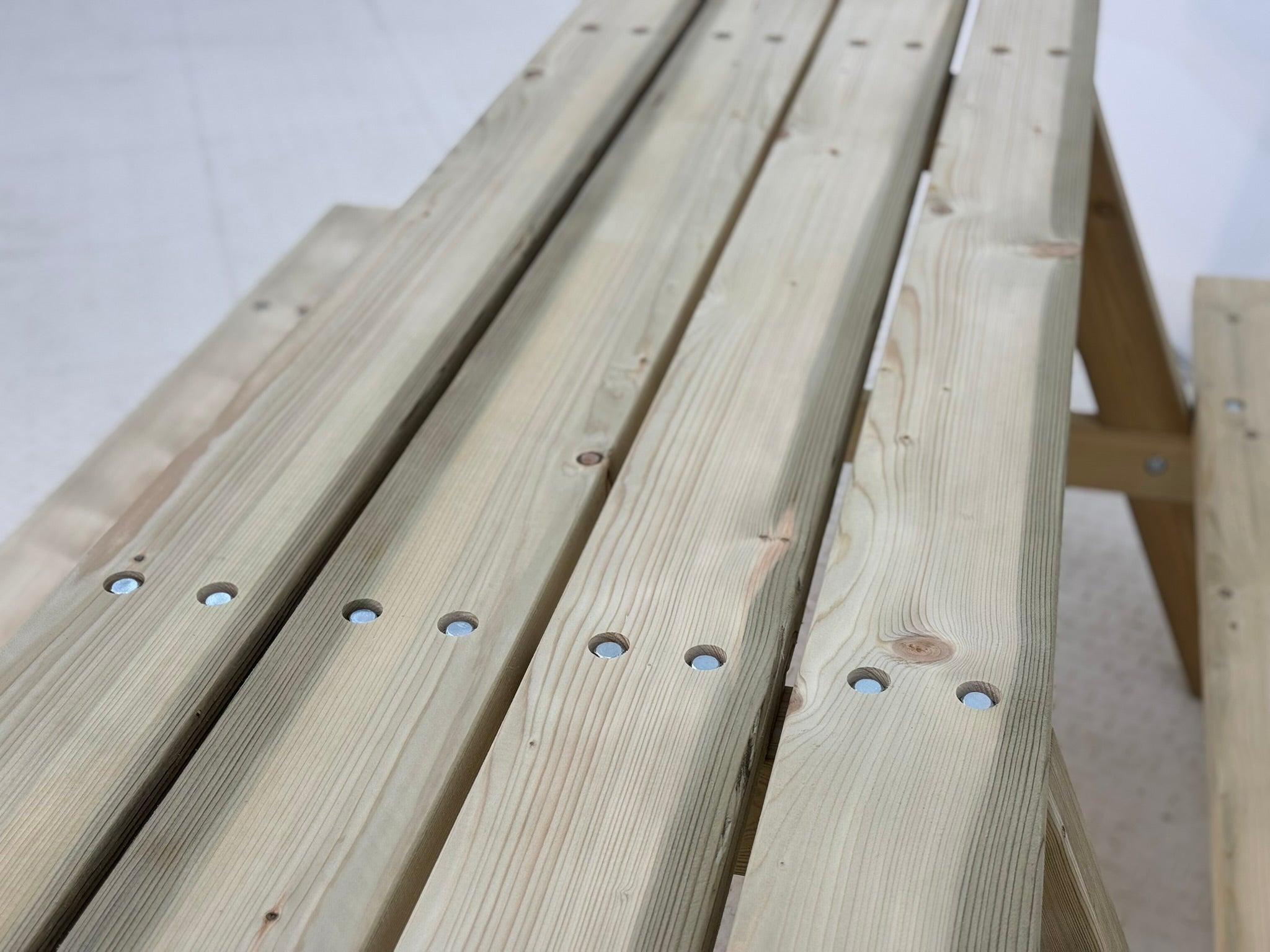 All timber used is pressure treated to protect against rot, moisture and insect damage, making the bench suitable for year-round outdoor use. Corrosion-resistant fixings are fully recessed into the wood for a clean, professional finish and improved safety.