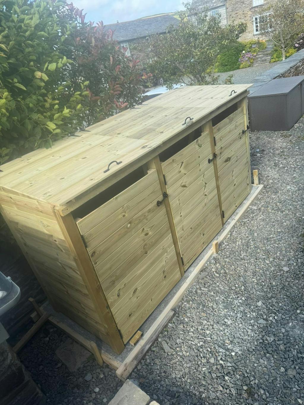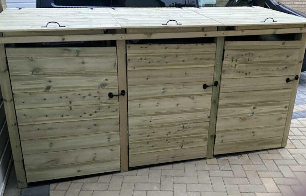 Read more about our environmental policies - Our wheelie bin storages are crafted from high-quality pressure-treated timber, known for its durability and resistance to decay, insects, and moisture. This treatment ensures your wheelie bin storage remains strong and long-lasting, making it perfect for outdoor use in gardens, patios, and public spaces.