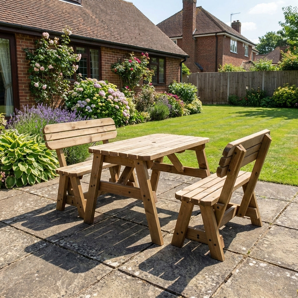 Read more about our environmental policies - Our picnic tables are crafted from high-quality pressure-treated timber, known for its durability and resistance to decay, insects, and moisture. This treatment ensures your picnic table remains strong and long-lasting, making it perfect for outdoor use in gardens, patios, and public spaces.