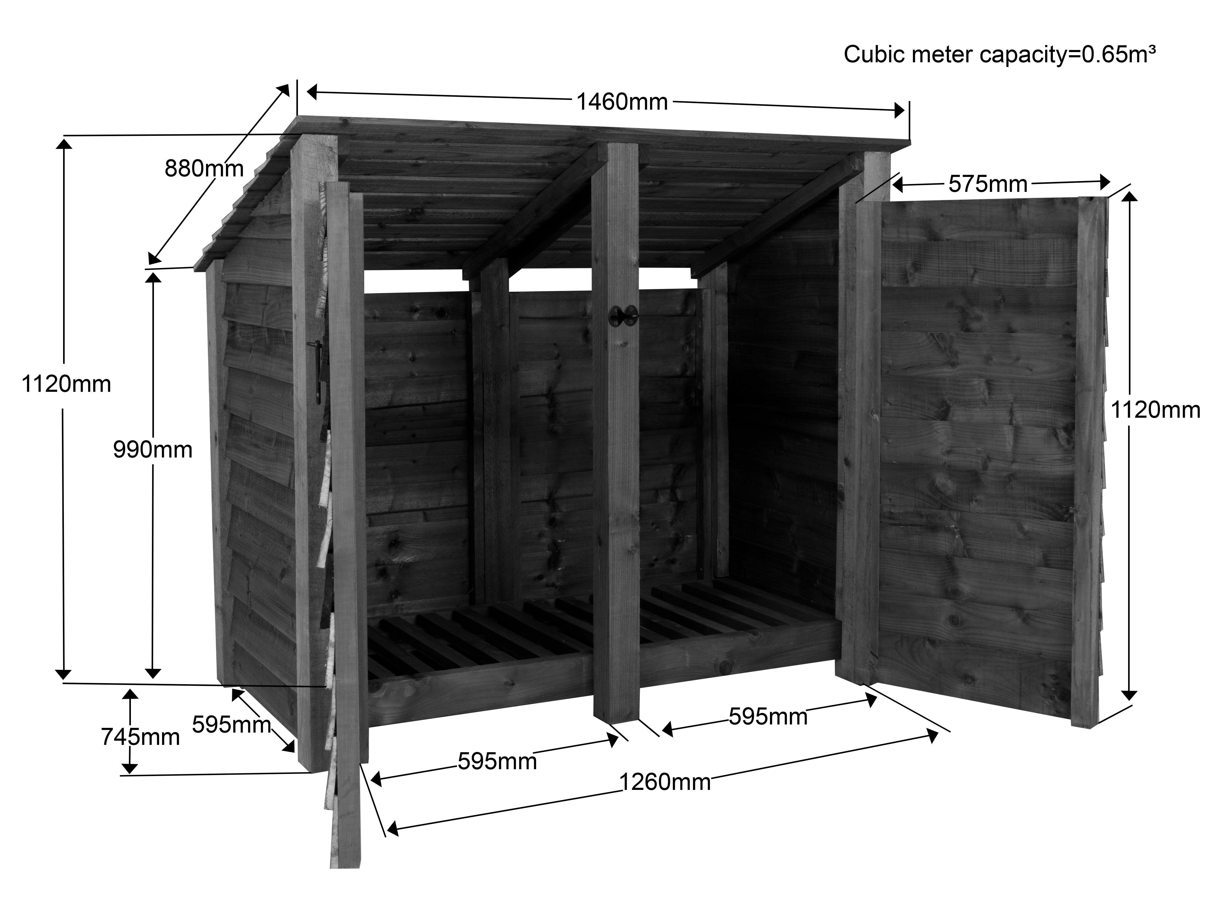 The Double bay Log Store is engineered for optimal firewood storage and seasoning. Constructed from pressure-treated, construction-grade timber, it ensures durability and resistance to decay. The design features slatted sides and a raised base, promoting air circulation to effectively reduce moisture content in logs. A sloped roof facilitates efficient water runoff, safeguarding the wood from precipitation. All provided fixings are corrosion-resistant, enhancing the structure's longevity. This log store offers a practical solution for maintaining a dry and organized firewood supply.