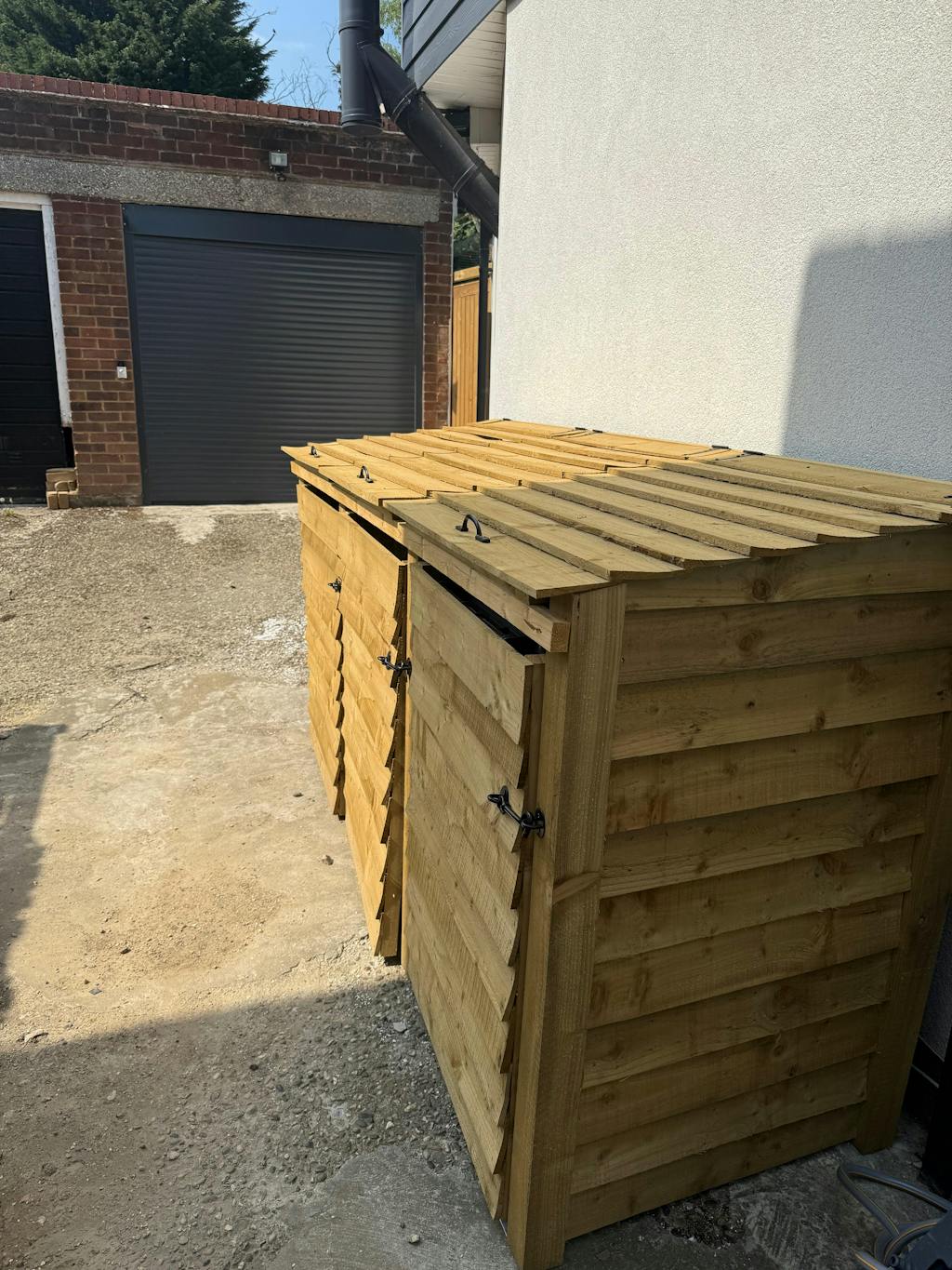Read more about our environmental policies - Our wheelie bin storages are crafted from high-quality pressure-treated timber, known for its durability and resistance to decay, insects, and moisture. This treatment ensures your wheelie bin storage remains strong and long-lasting, making it perfect for outdoor use in gardens, patios, and public spaces.