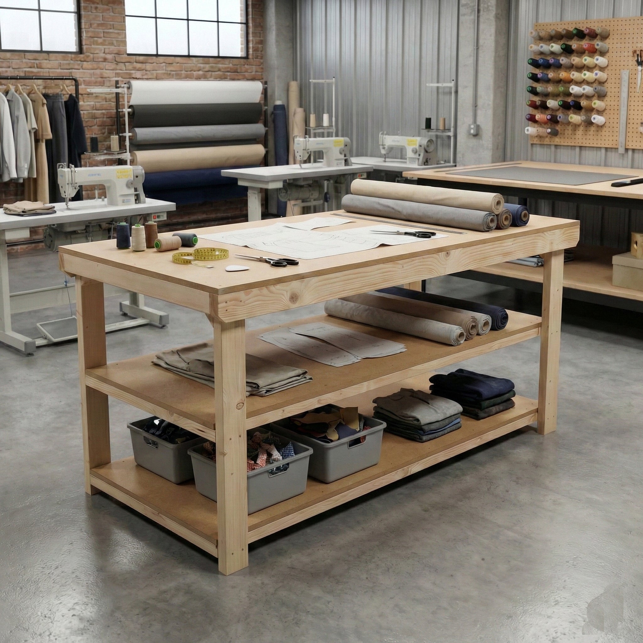 Wooden Workbench MDF Top Depth-3ft With Double Shelf