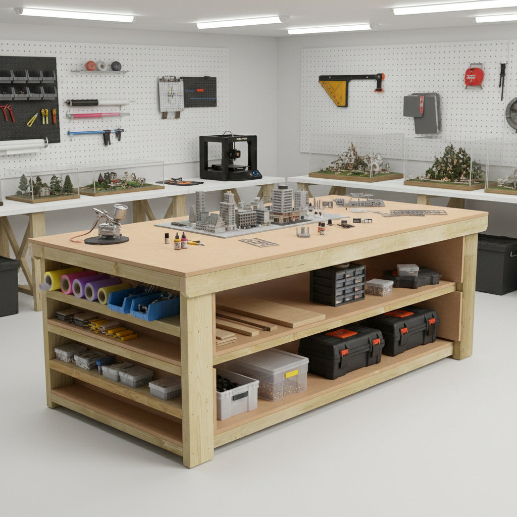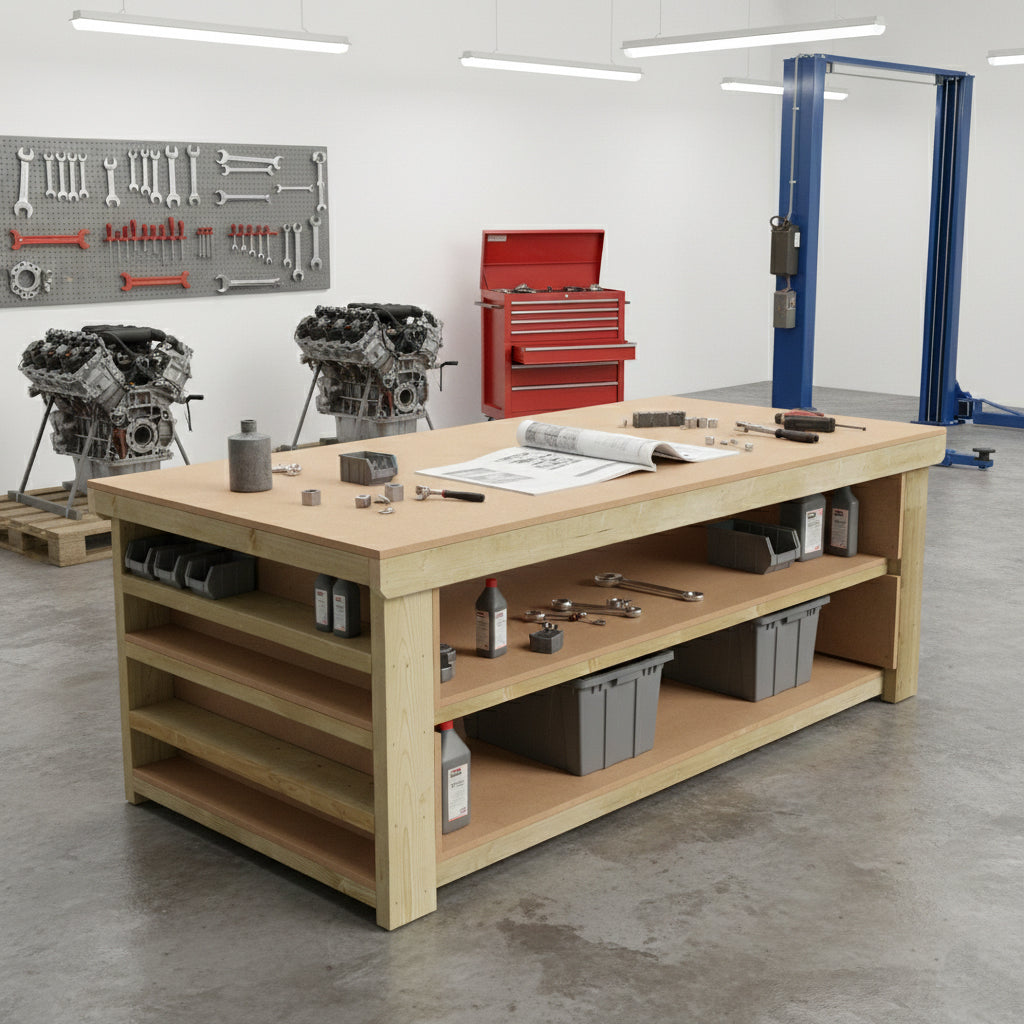 Enhanced Storage Solutions: Equipped with additional shelving on each end, this workbench offers convenient storage for tools and materials, keeping your essentials within easy reach and your workspace organized.