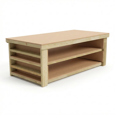 Introducing our Wooden MDF Top Workbench with Extra Shelving, meticulously designed to enhance your workspace efficiency. Handcrafted in the UK, this robust workbench features a construction-grade CLS C16 pressure-treated timber frame and a smooth 18mm MDF ply sheet top, providing a durable and reliable surface for all your projects.