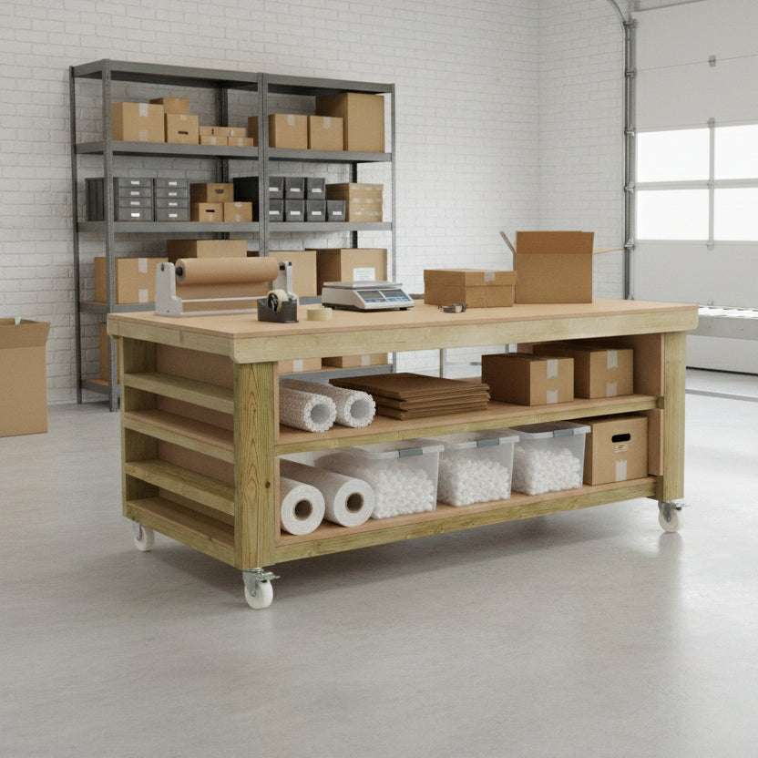 Introducing our Wooden Workbench with 18mm MDF top, available in 3ft and 4ft widths and equipped with heavy-duty wheels for effortless mobility. Handcrafted in the UK, this workbench features a robust construction-grade CLS C16 kiln-dried timber frame and a premium 18mm MDF top, ensuring exceptional strength and durability. Designed for professionals and DIY enthusiasts, its compact size is perfect for workshops, garages, and studios where space is at a premium. The integrated swivel heavy-duty wheels with brake castors allow for easy movement and secure positioning, enhancing your workspace efficiency. Each bench is supplied in a knockdown form for straightforward on-site assembly, requiring only a screwdriver. Upgrade your workspace with this versatile, mobile, and sturdy workbench, built to support all your creative and professional projects.